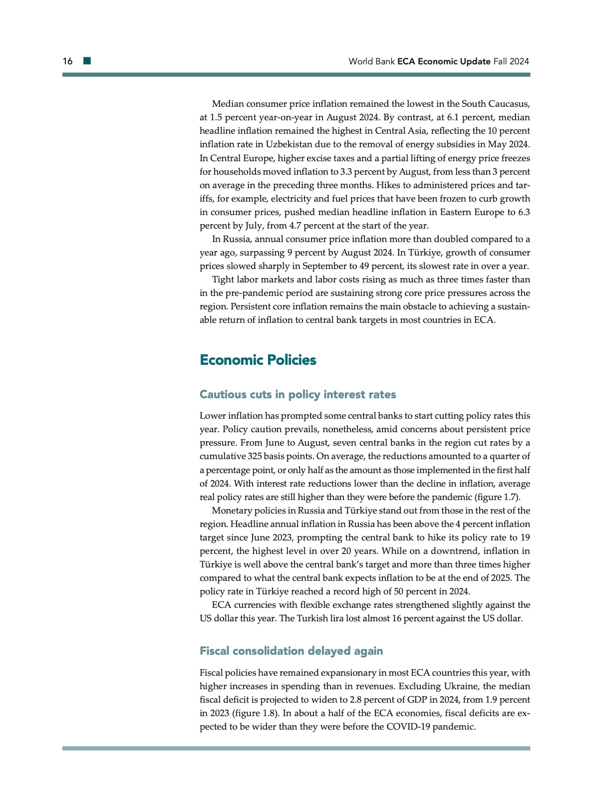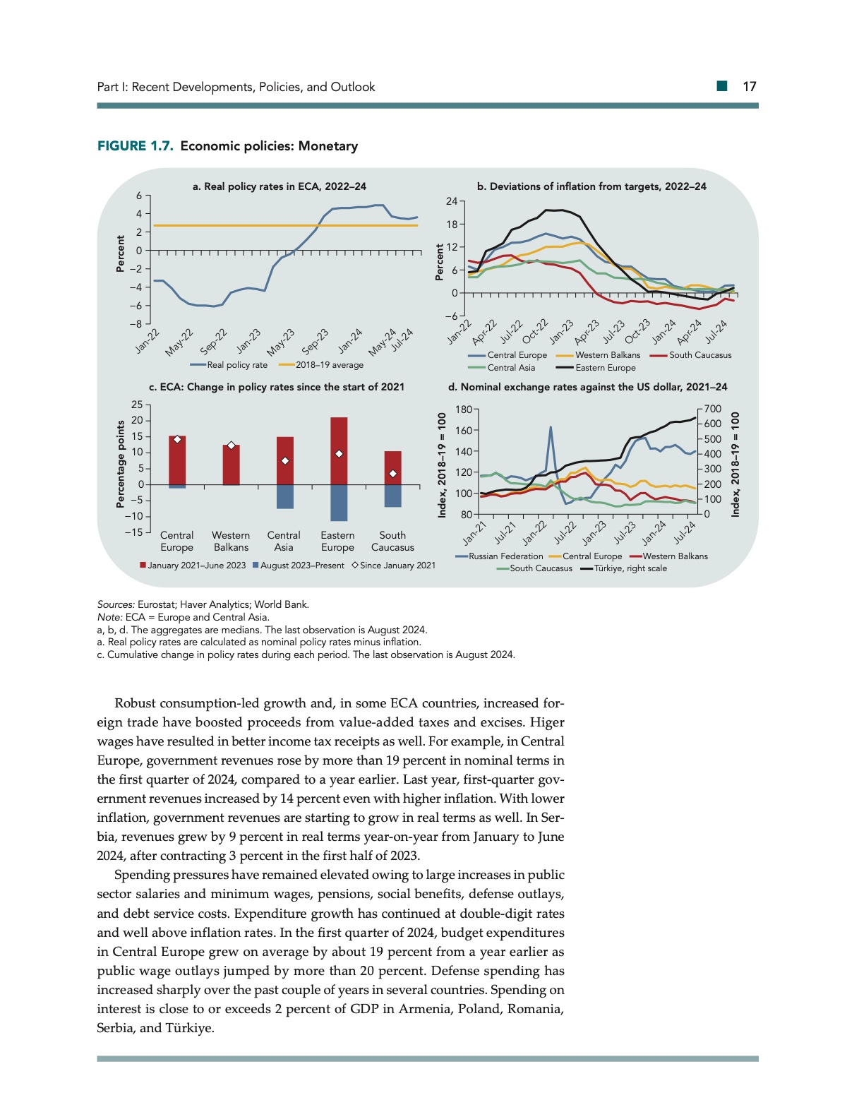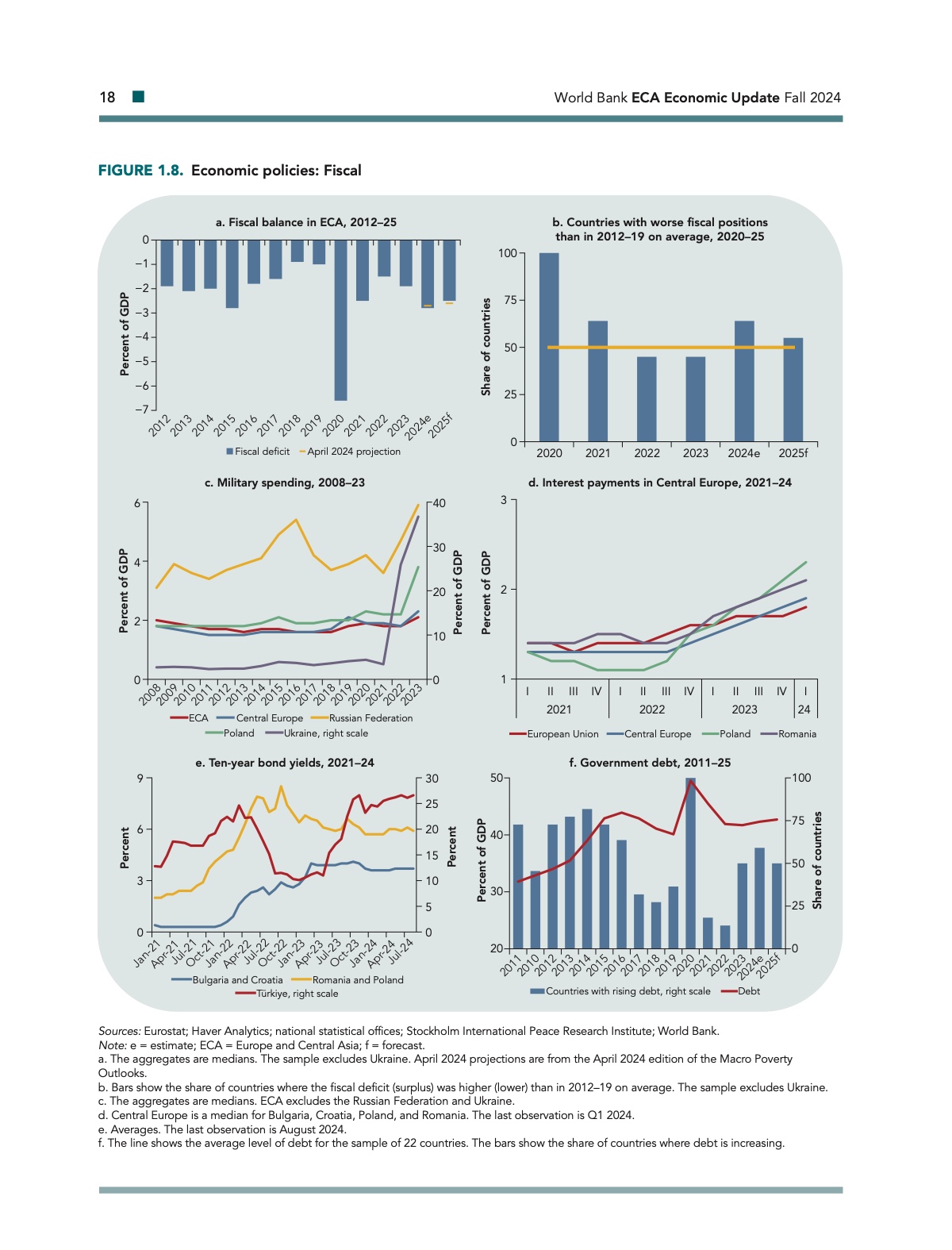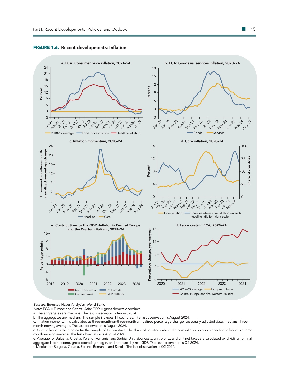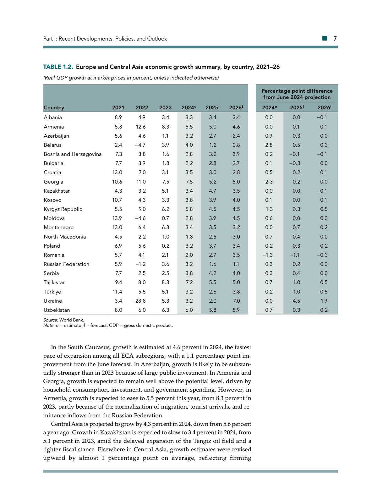 当前,随着工资水平上涨和政府向居民家庭的转移支付增加,以及通胀率下降,个人消费成为欧洲和中亚发展中经济体增长的推动力。汇款流入也超过了疫情前的水平,继续助力西巴尔干、南高加索和中亚地区的经济蓬勃发展。