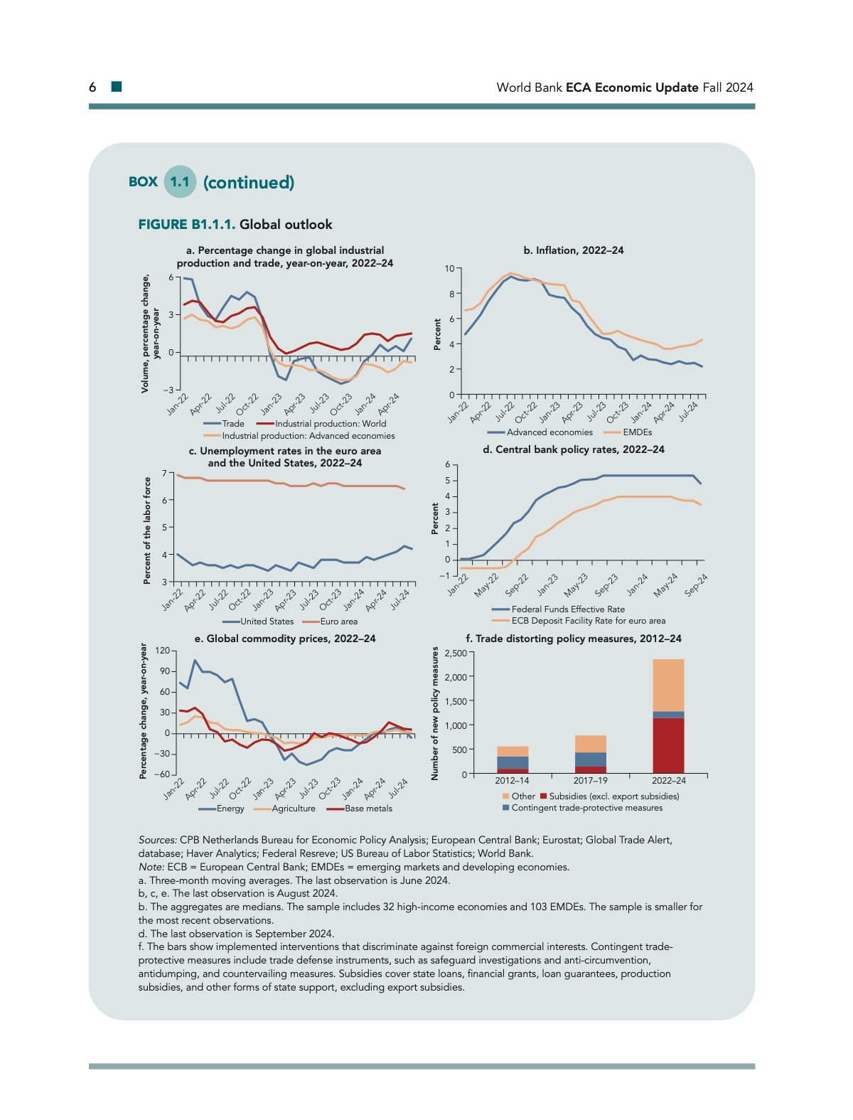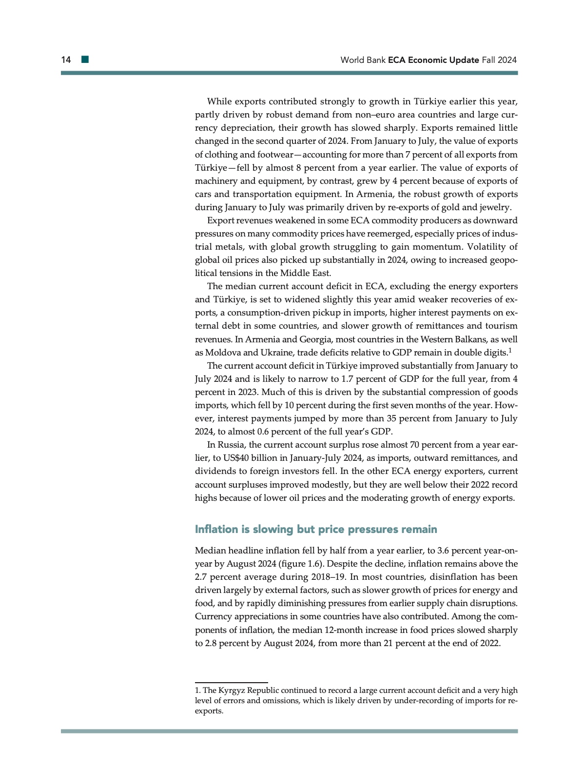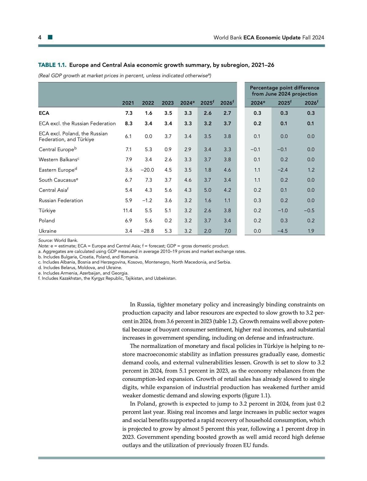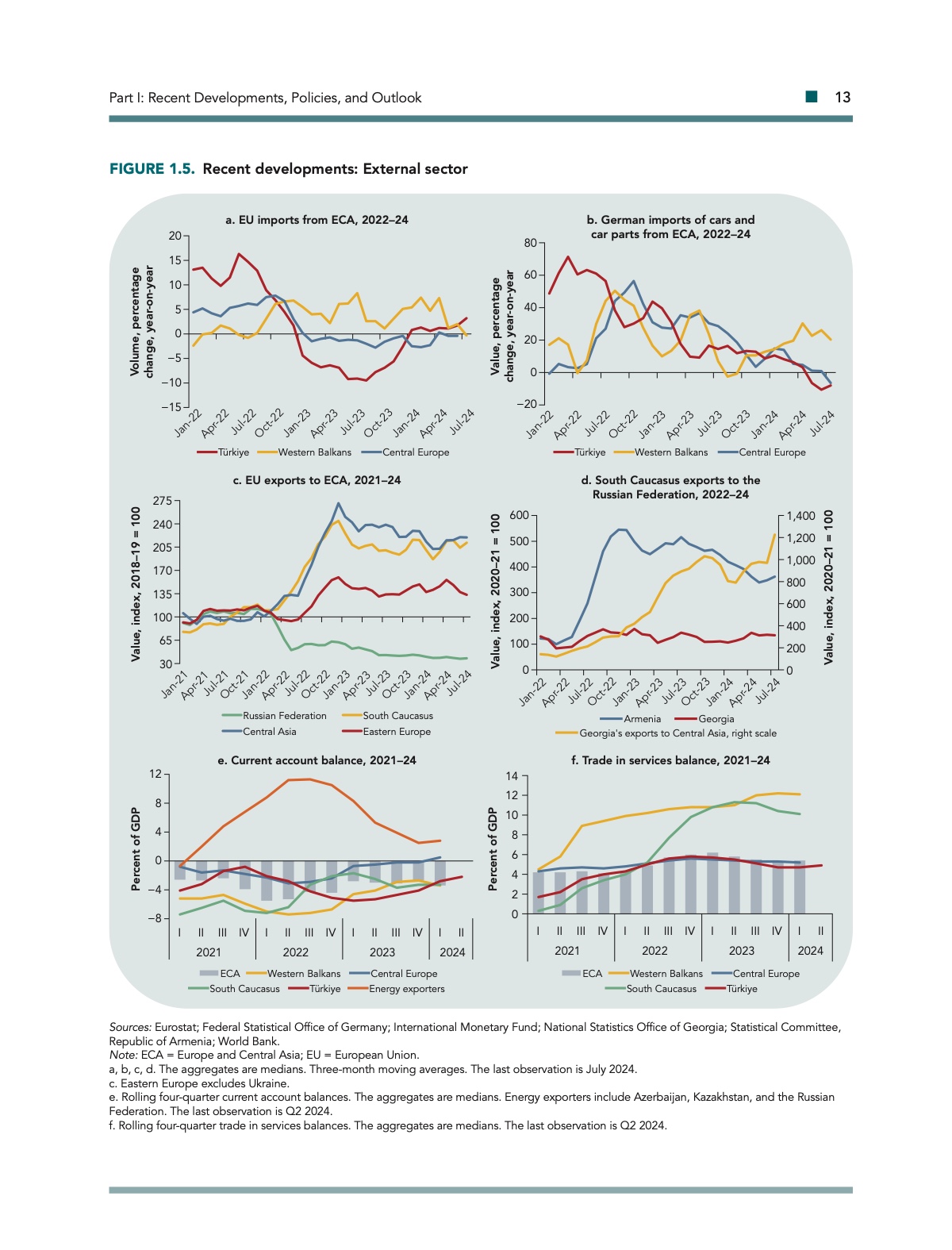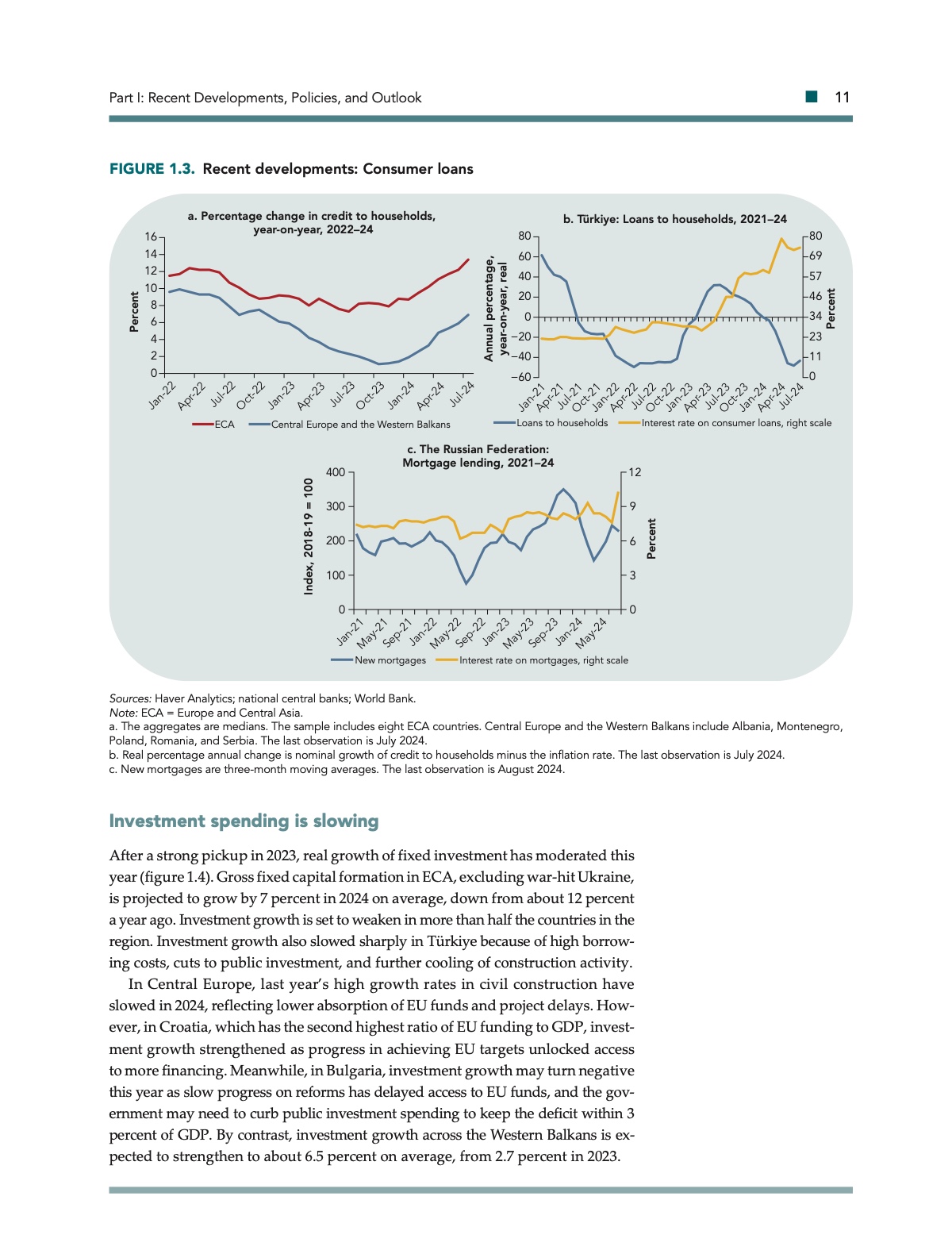 当前,随着工资水平上涨和政府向居民家庭的转移支付增加,以及通胀率下降,个人消费成为欧洲和中亚发展中经济体增长的推动力。汇款流入也超过了疫情前的水平,继续助力西巴尔干、南高加索和中亚地区的经济蓬勃发展。