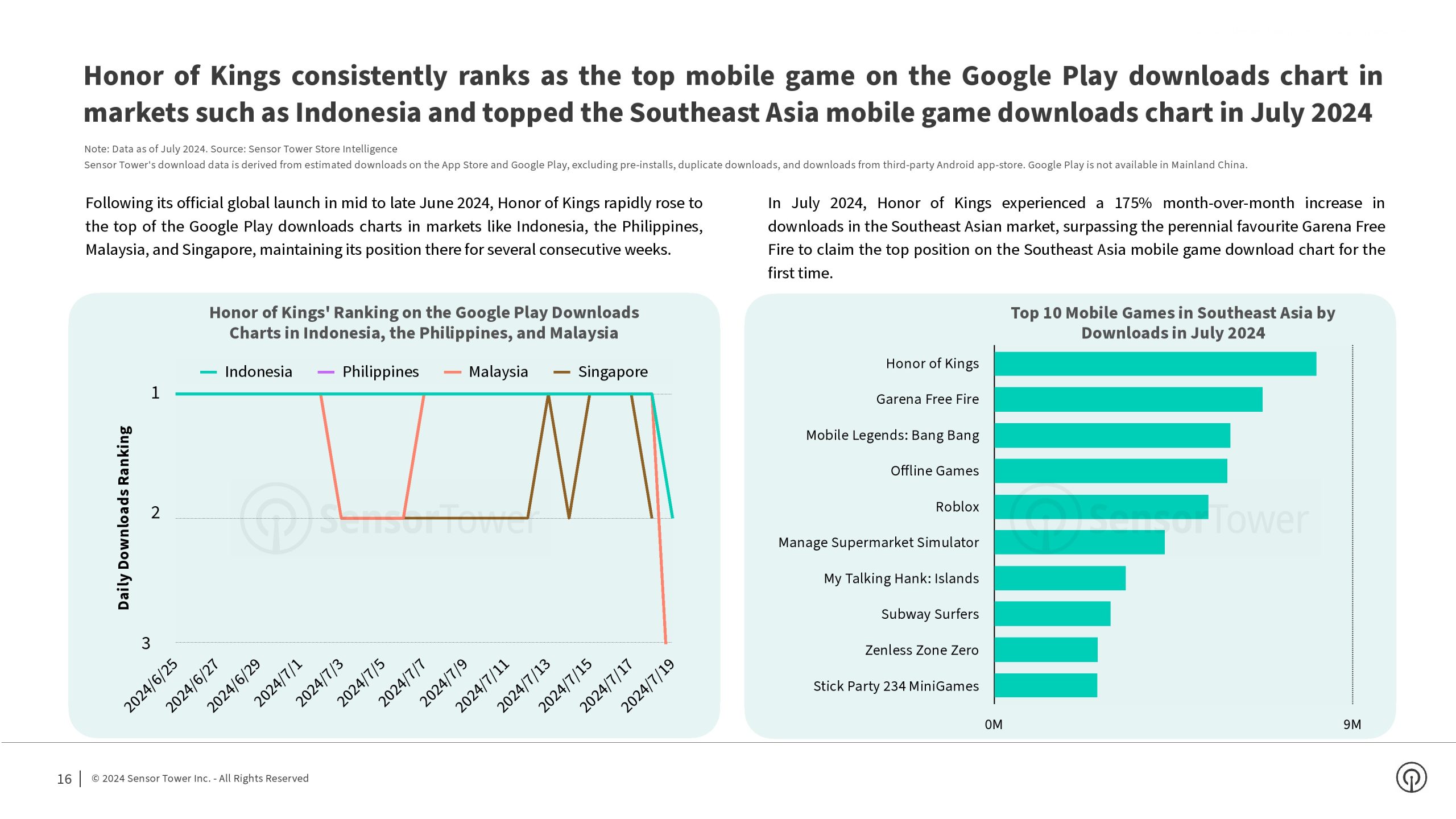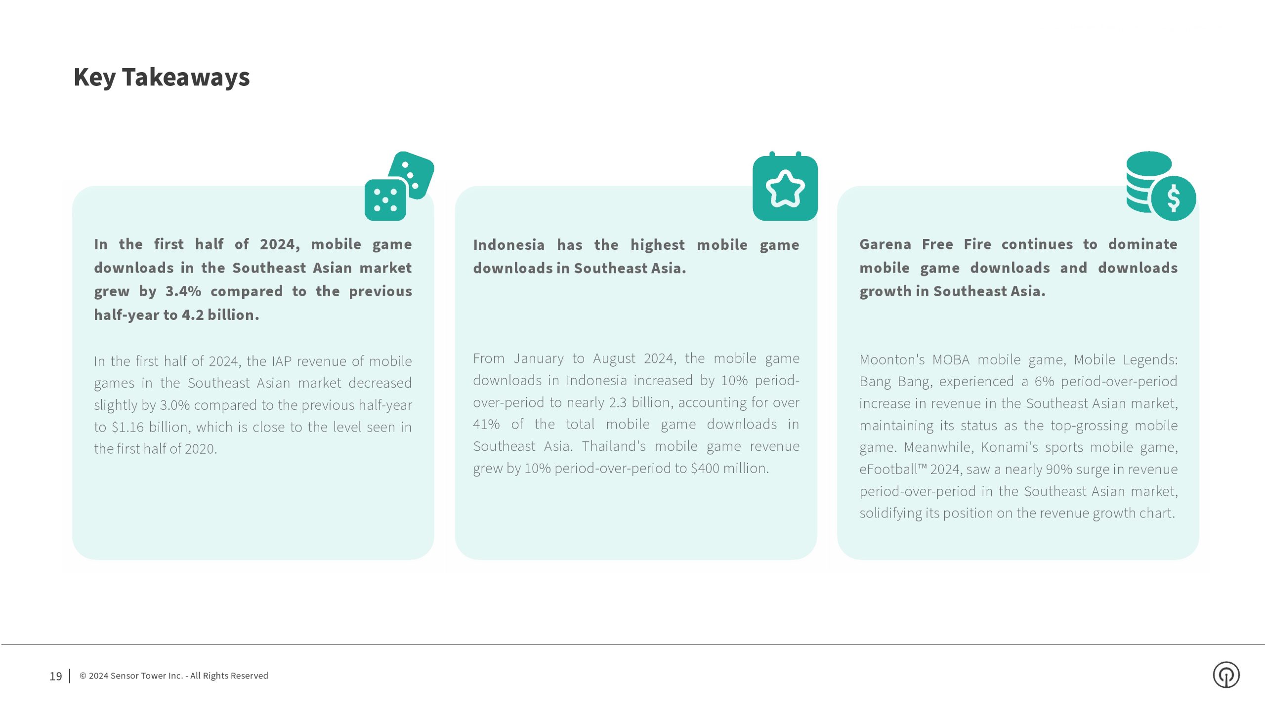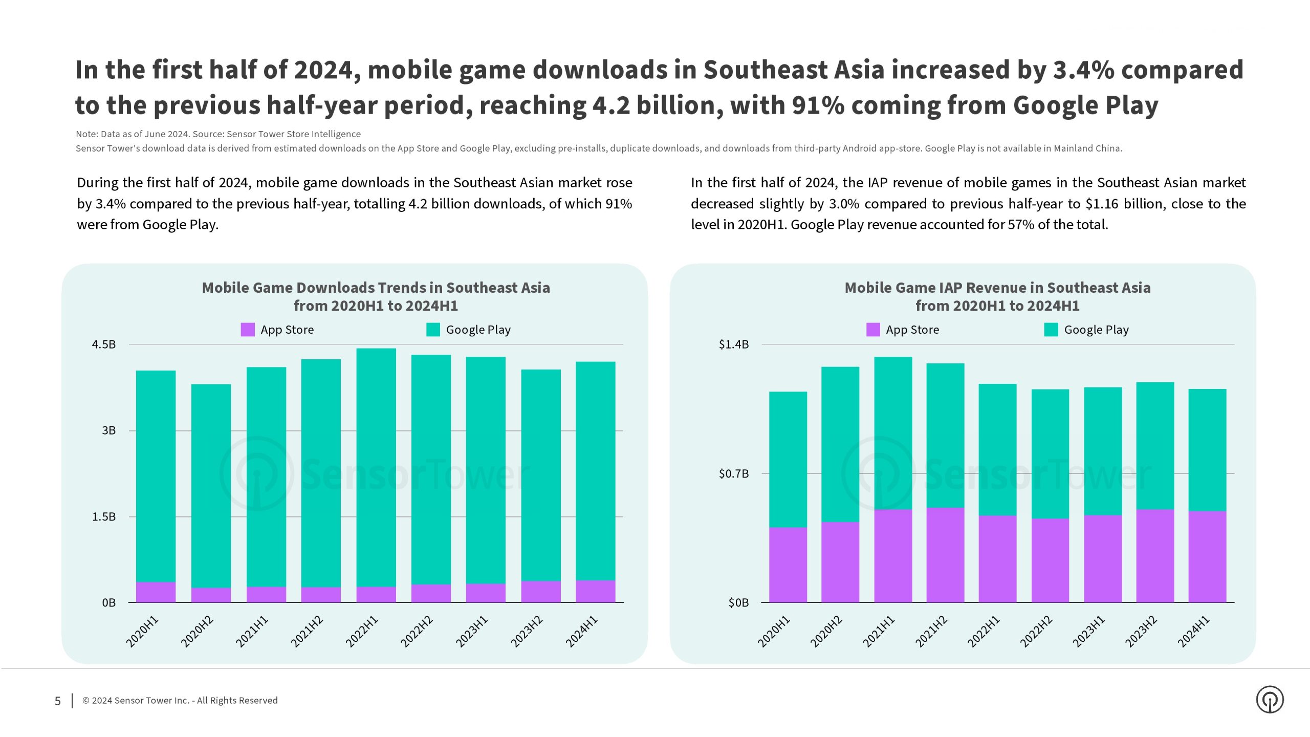2024年上半年,东南亚市场的手机游戏下载量达到42亿次,同比增长3.4%,其中91%来自Google Play。