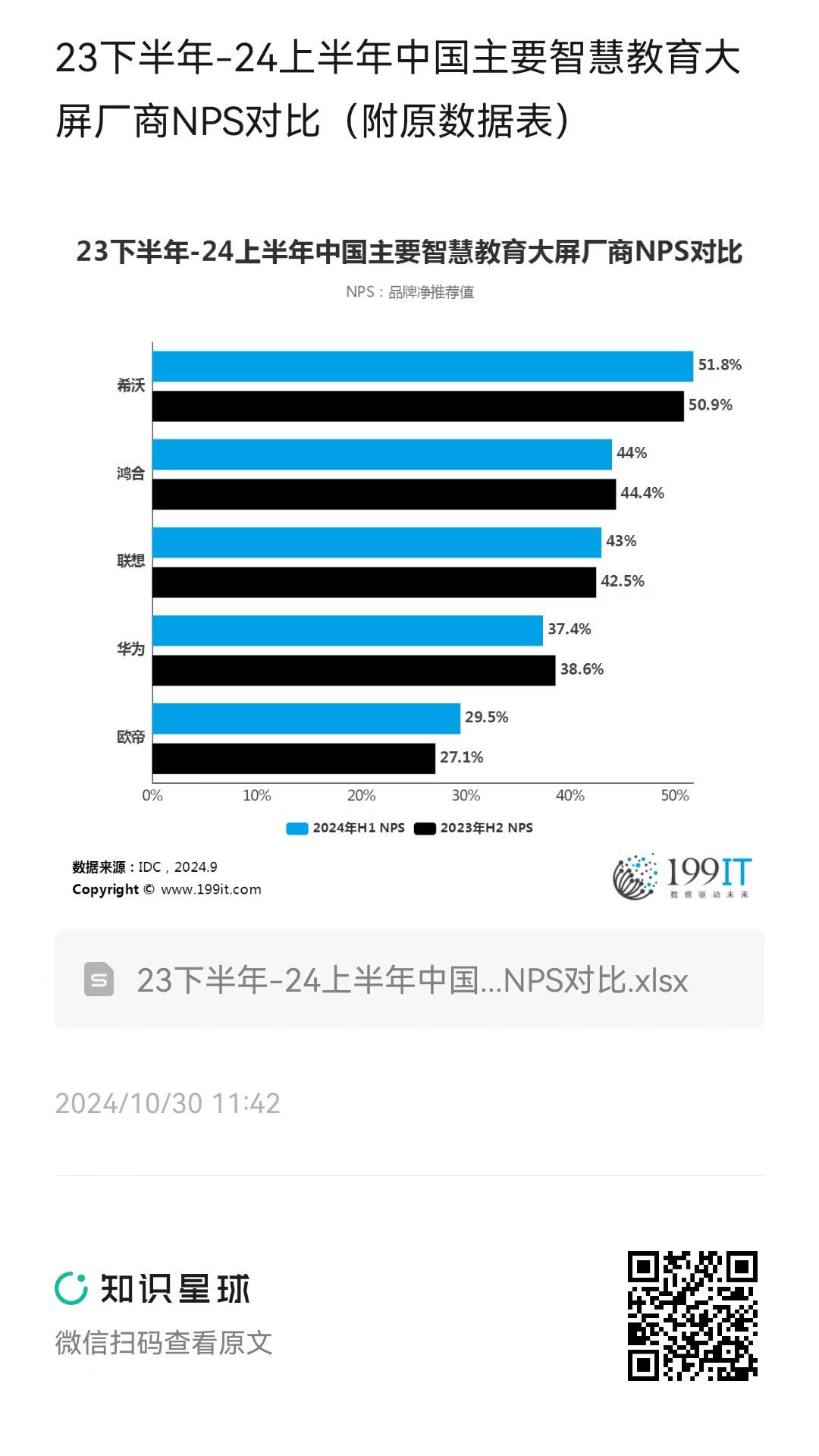 23下半年-24上半年中国主要智慧教育大屏厂商NPS对比(附原数据表) ​​​
