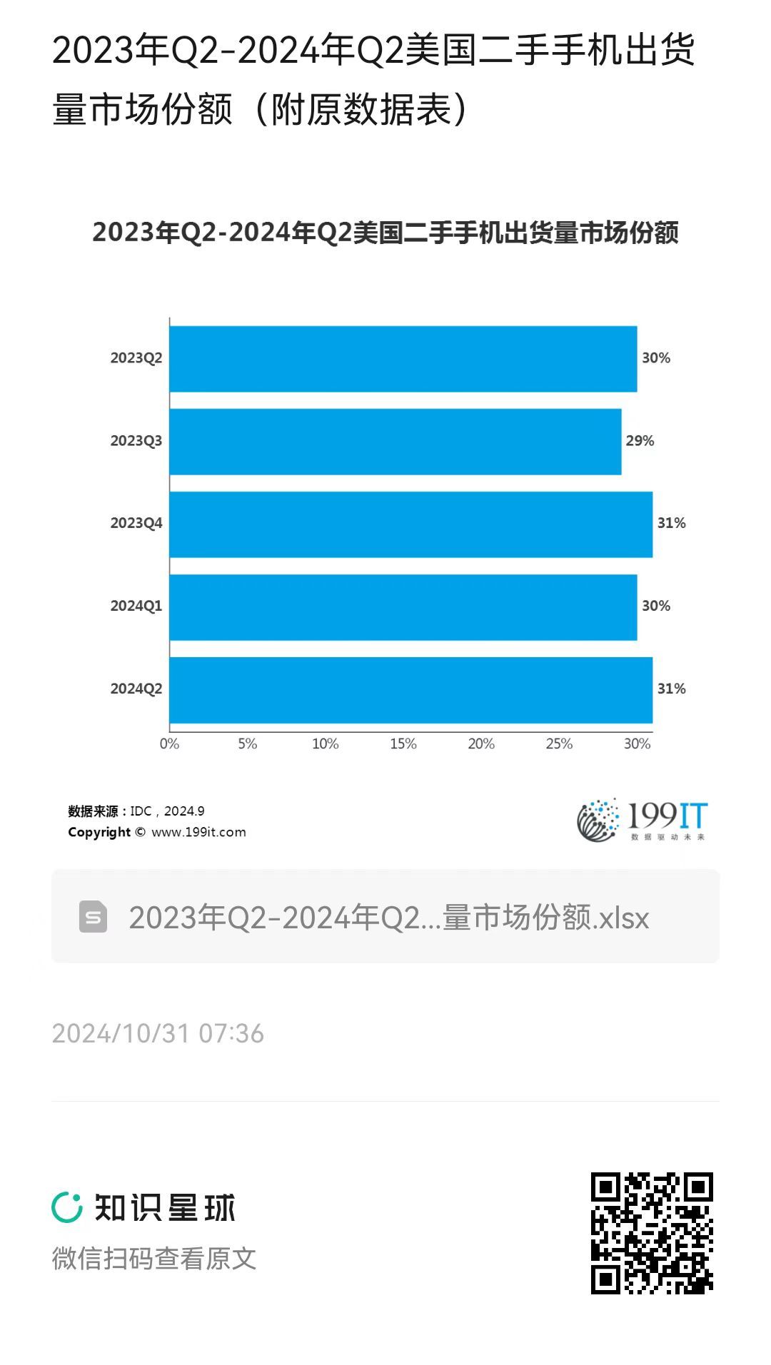 - 2023年Q2-2024年Q2中国二手手机出货量市场份额(附原数据表)