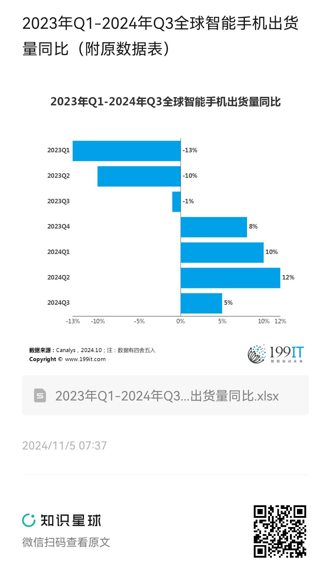 - 2024年-2029年全球智能手机出货量同比预测(附原数据表)