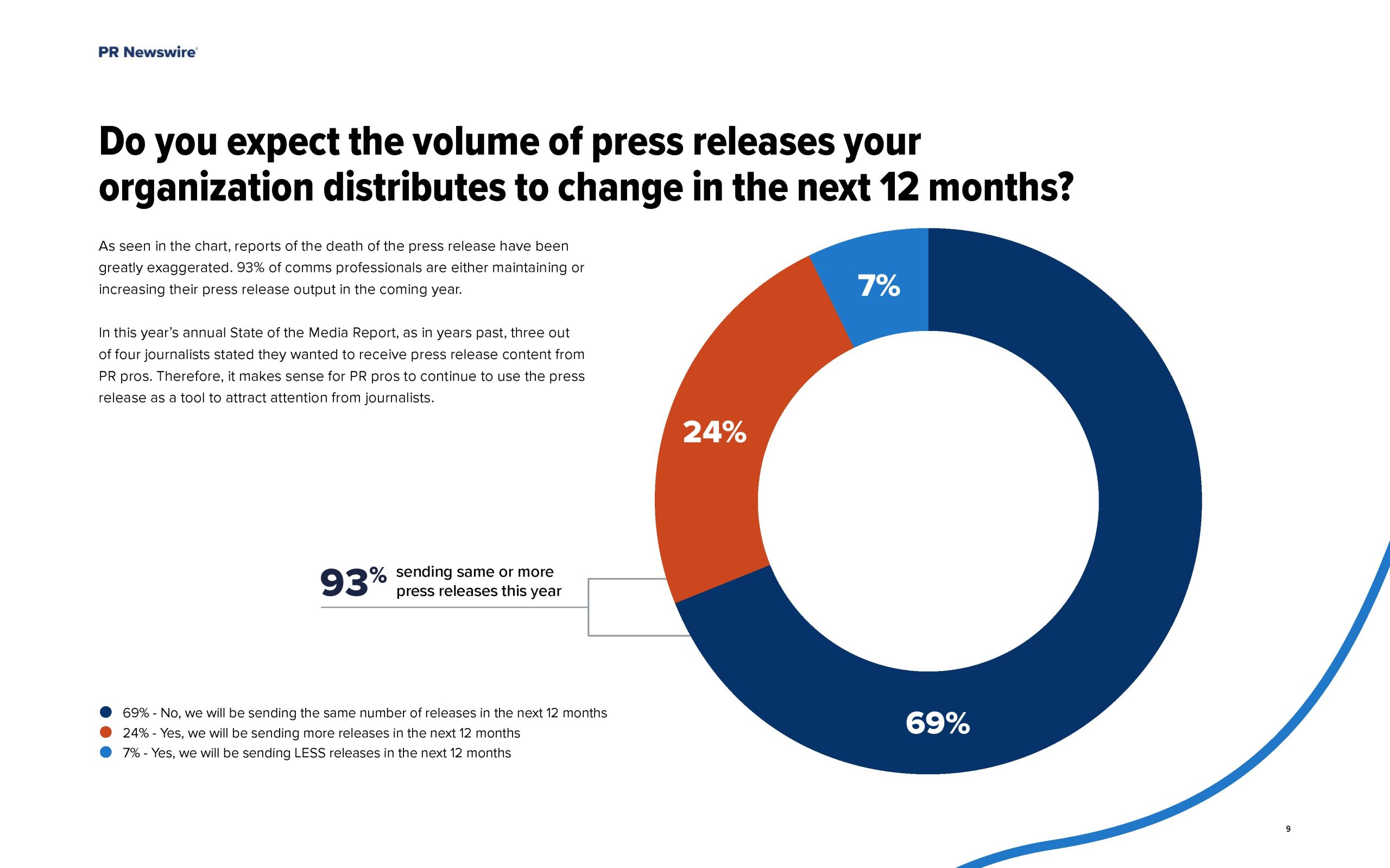 - 大多数受访者(69%)希望在未来12个月内发送相同数量的新闻稿。