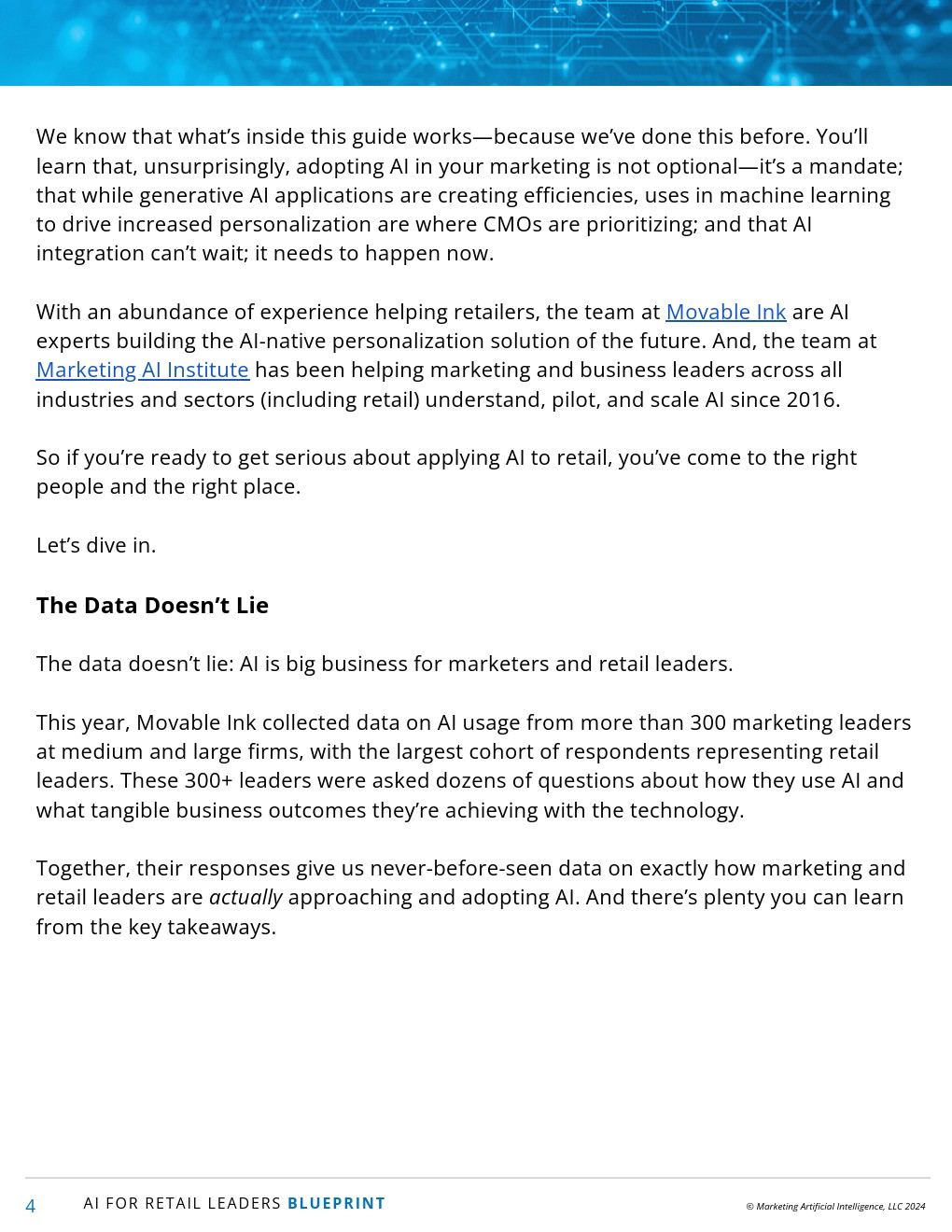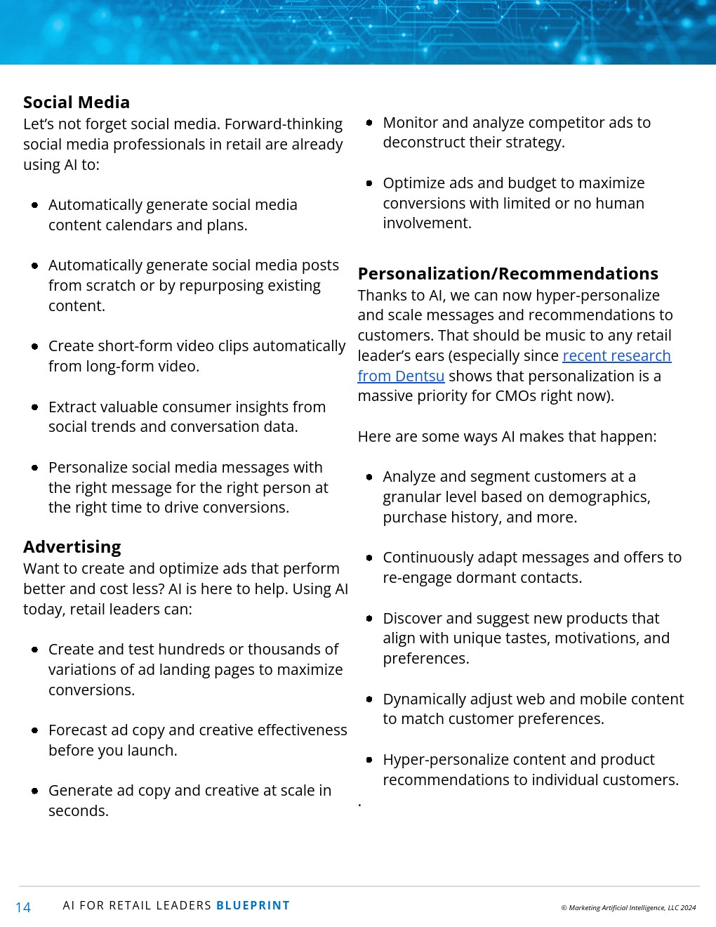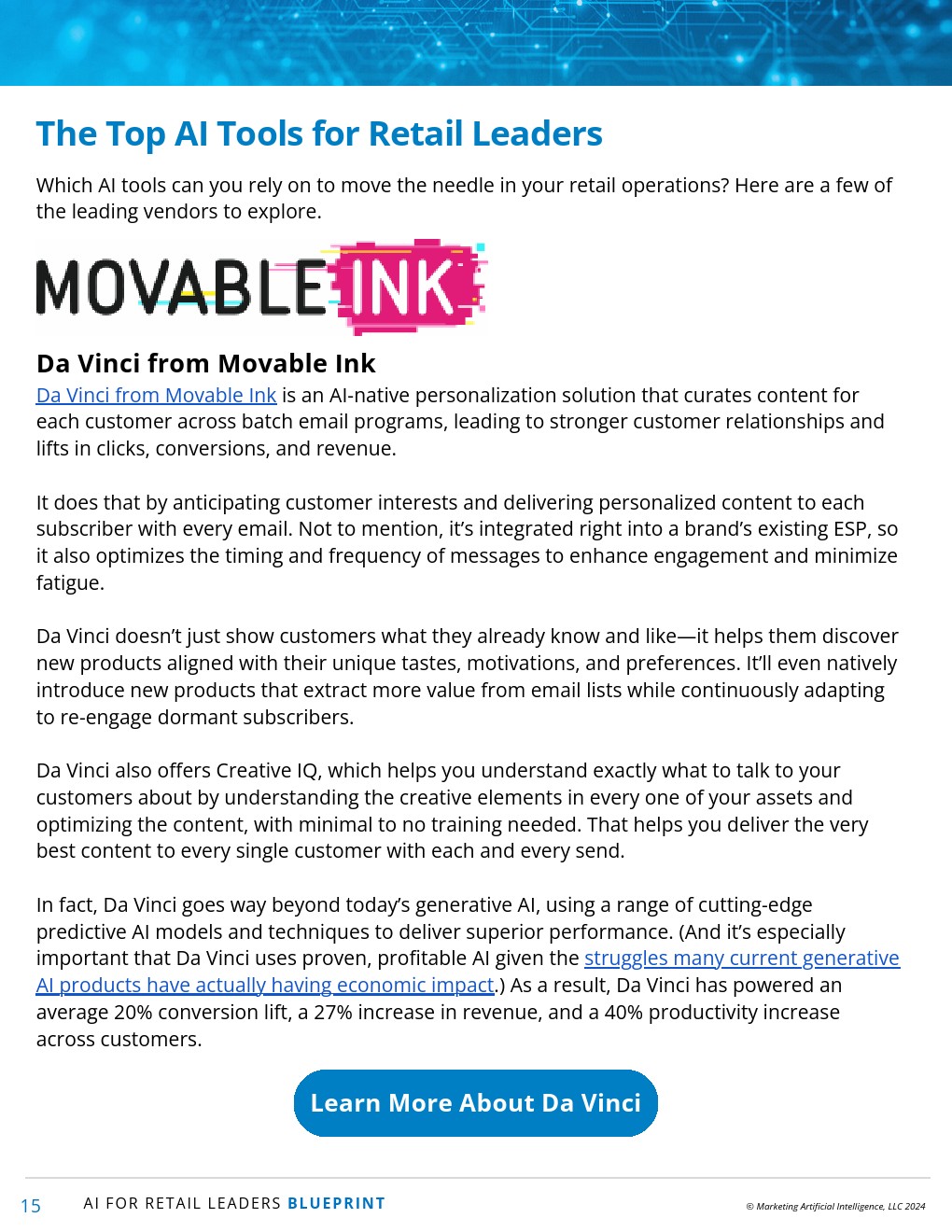 简而言之,明白这一点的零售领导者正在通过以正确的方式将正确的人工智能应用于正确的用例,积极地赋予自己超能力。本指南将向您展示如何做到这一点。发现关于营销和零售领导者如何使用人工智能的从未见过的数据,以及具体的用例、工具和建议。