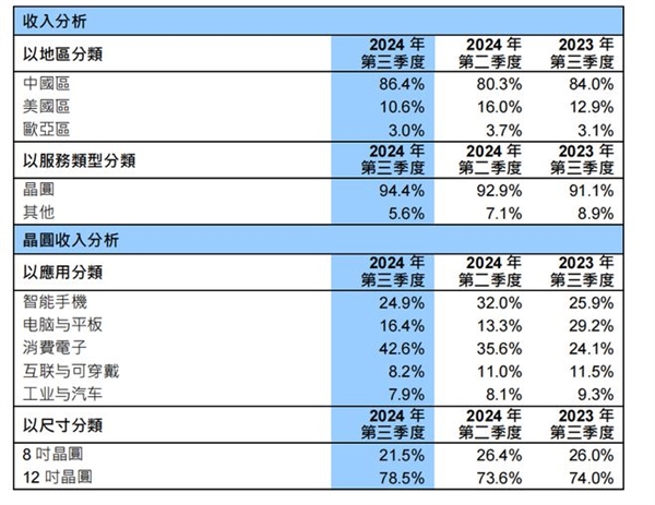按晶圆尺寸分类,三季度12寸晶圆营收占比为78.5%,8寸晶圆营收占比为21.5%。