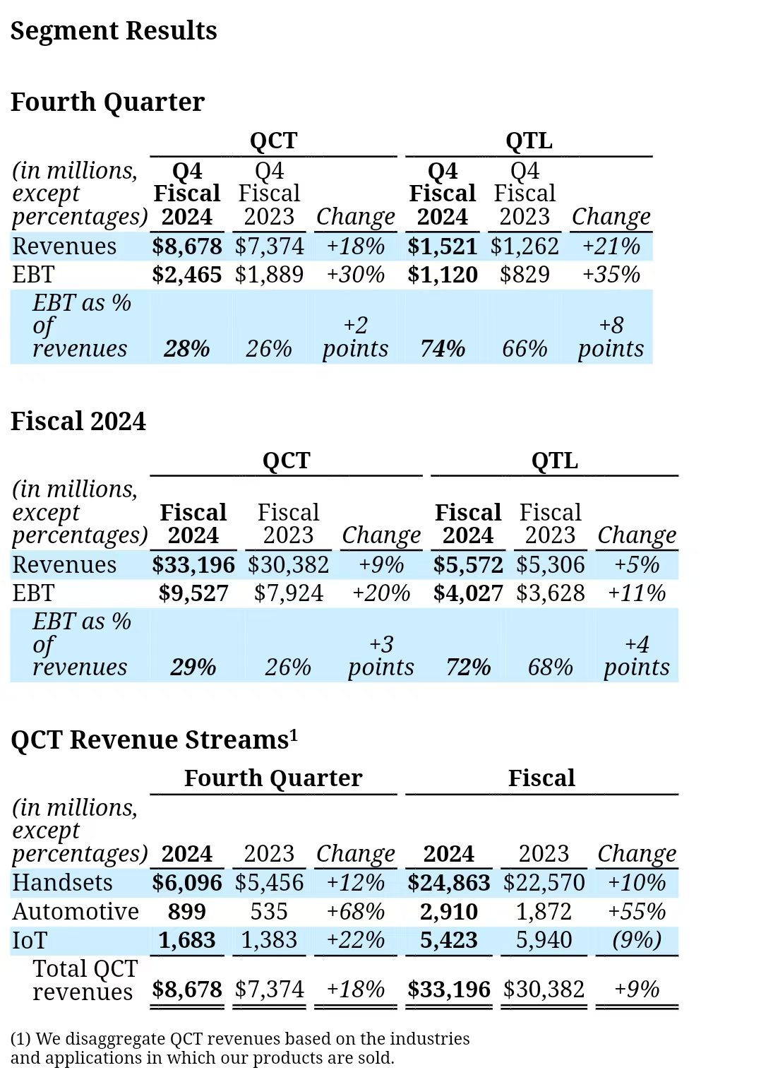 其中, 手机、汽车等芯片业务QCT收入86.78亿美元,同比增长18%;技术授权业务QTL收入15.21亿美元,同比增长21%。