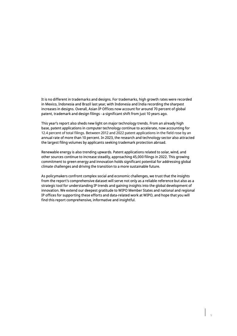 即便面对不确定的经济环境,对知识产权的需求仍在增长。而且这种需求越来越本土化。例如,专利申请量的增长主要是由国内居民推动的,而非外国创新者。随着申请量的增长,要应对的挑战仍然是质量问题以及将知识产权产权申请转化为实际产品和服务的能力。
