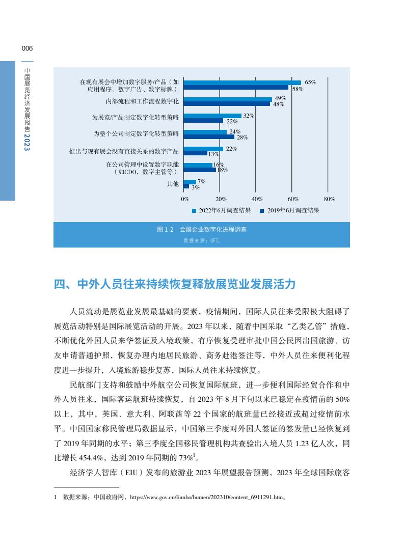 UFI 的数据也印证了中国展览业的持续复苏,报告2023年下半年活动“正常”的中国公司比例达到 74%,而半年前这一比例仅力 29%。