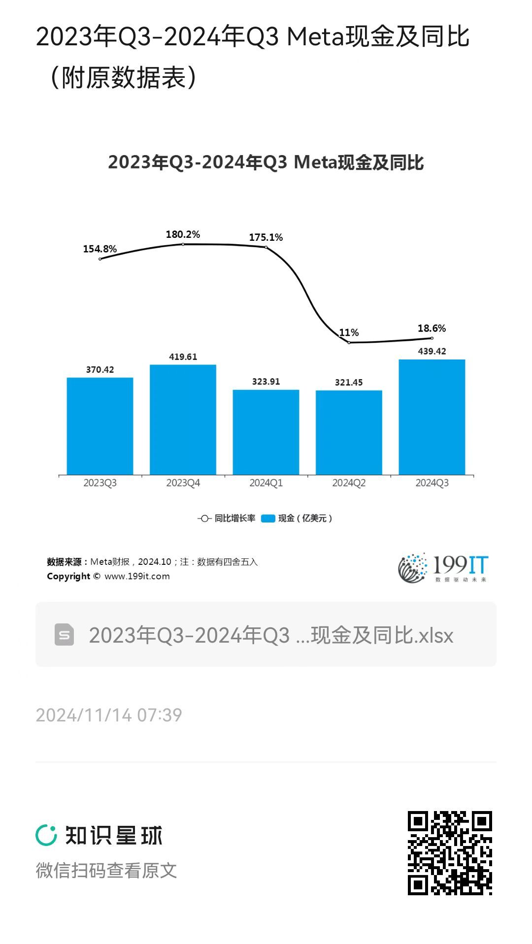 - 2024财年Q3-2025财年Q3 Meta现金及同比(附原数据表)