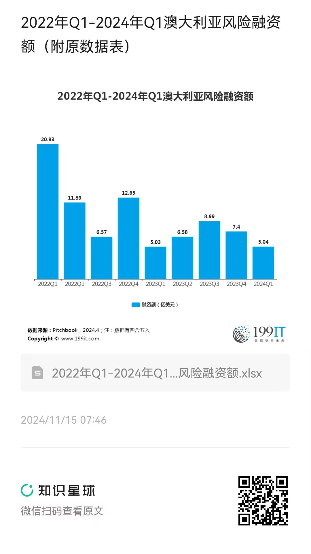 2022年Q1-2024年Q1澳大利亚风险融资额(附原数据表) ​​​