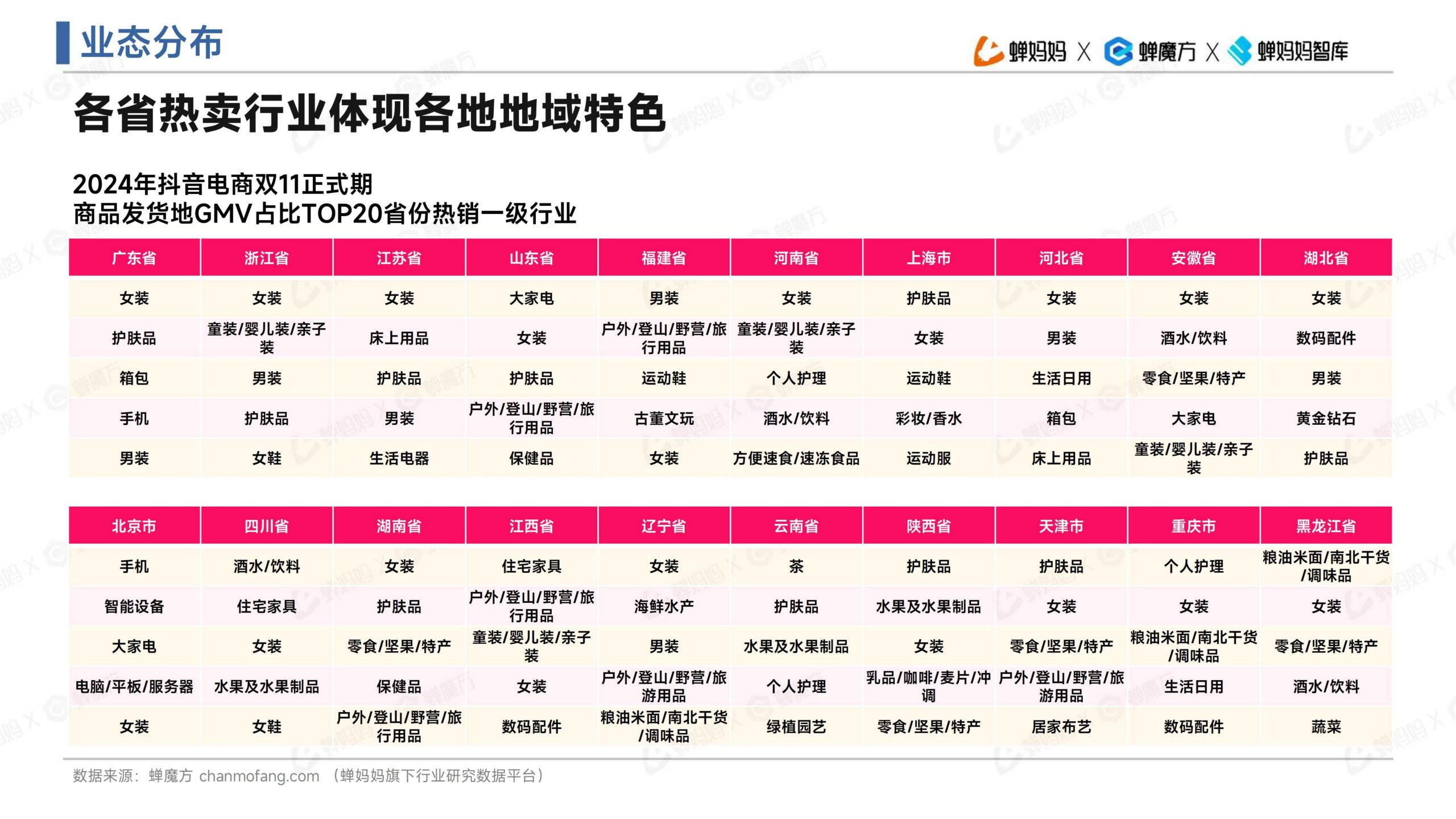 客单价与地域特色:3C数码、钟表配饰客单价增速快,消费者习惯在双11购买贵价产品。各省热卖行业体现地域特色