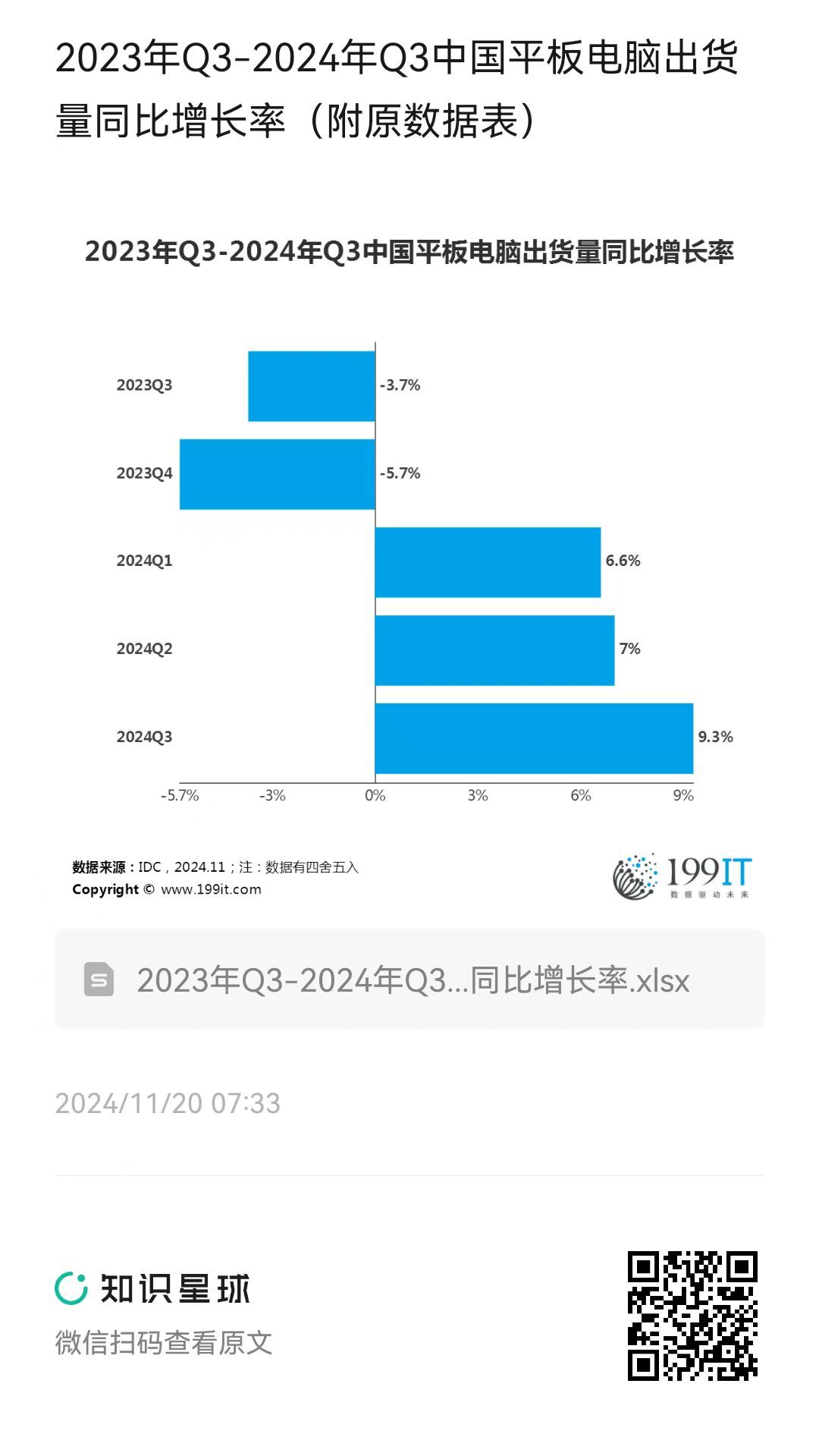 - 2024年中国平板电脑出货量及同比(附原数据表)