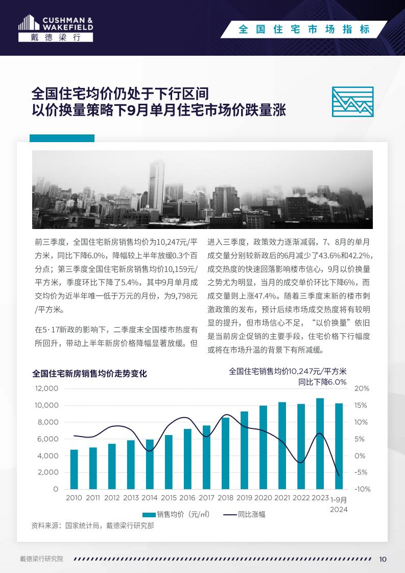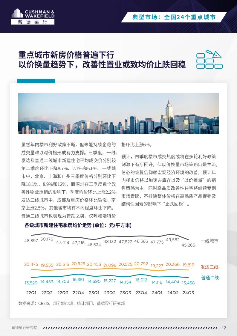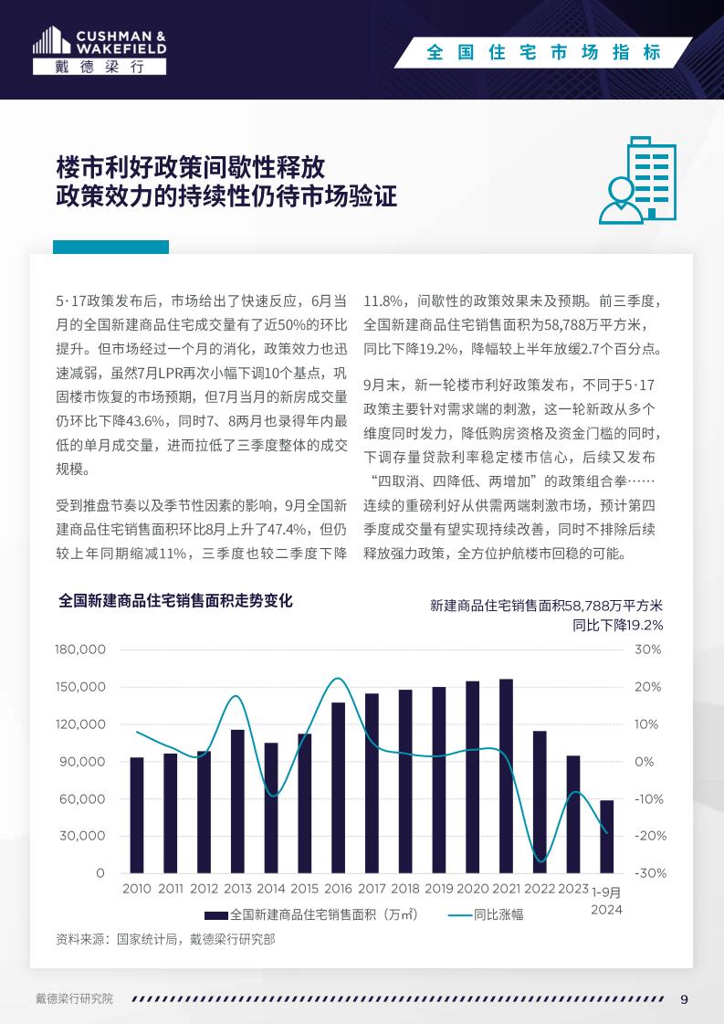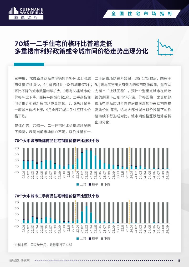 三季度末,央行提出降低存量贷款利率、统一最低首付比例、加大“白名单”项目贷款投放力度等多项举措助力房地产市场“止跌回稳”,再加上10月推出的一揽子增量政策组合拳,预计四季度国内房地产行业将出现好转,特别是住宅市场在低利率及低门槛的购房政策环境下有望迎来明显改善。