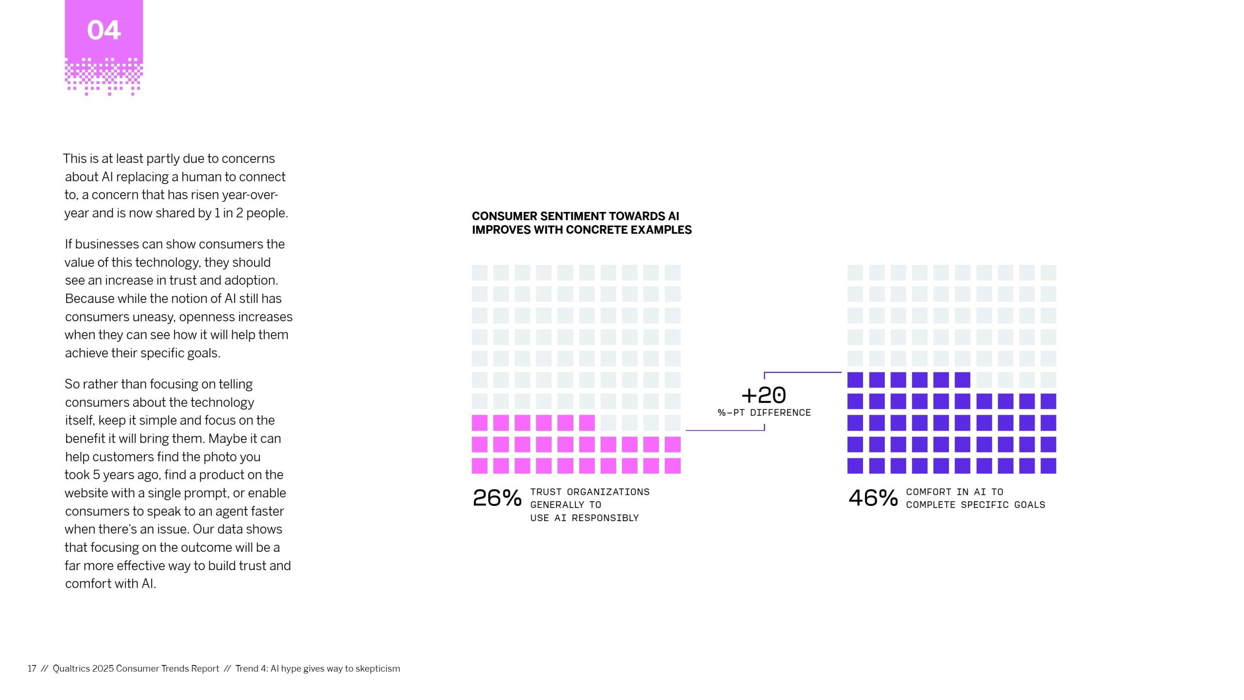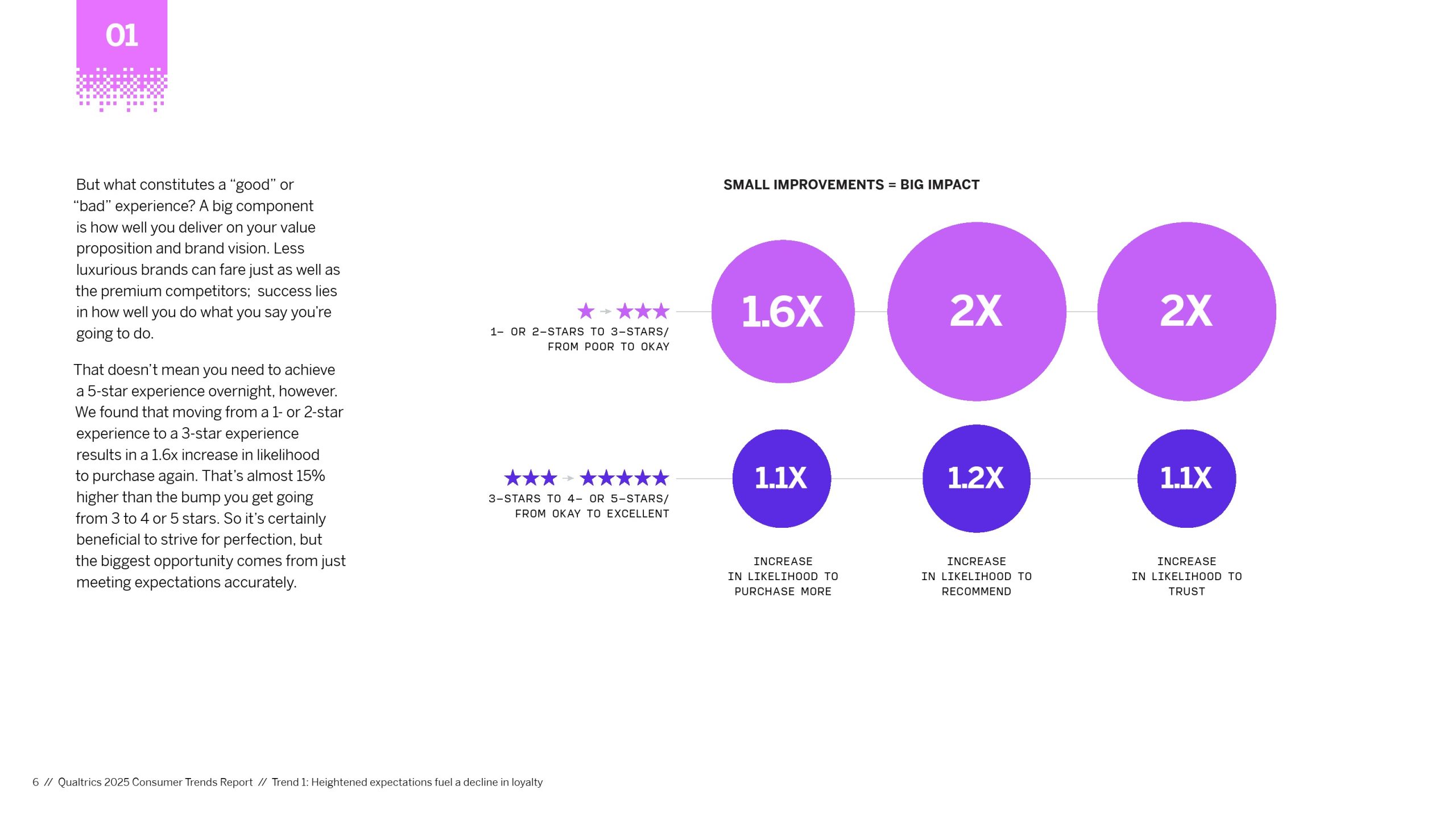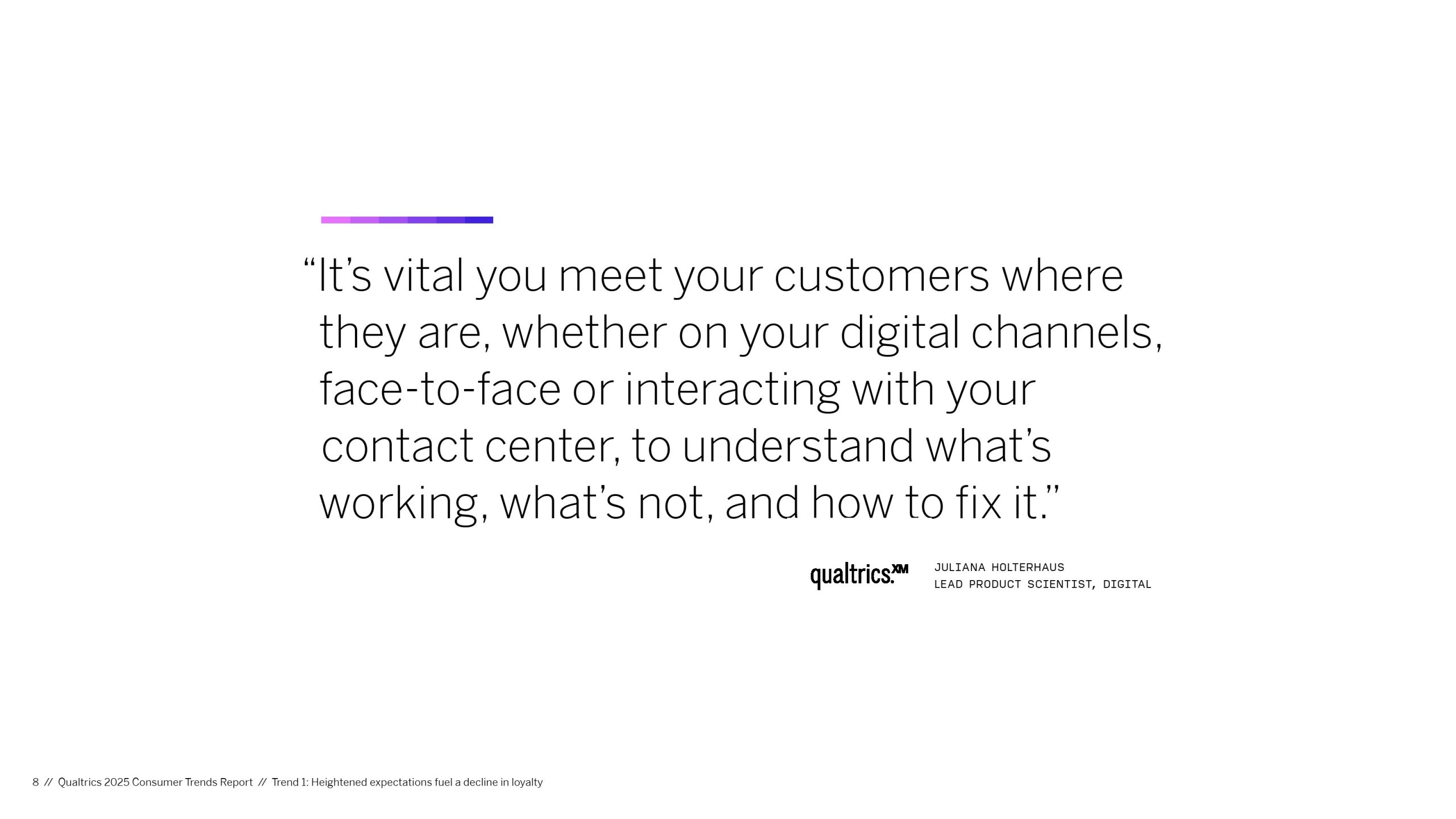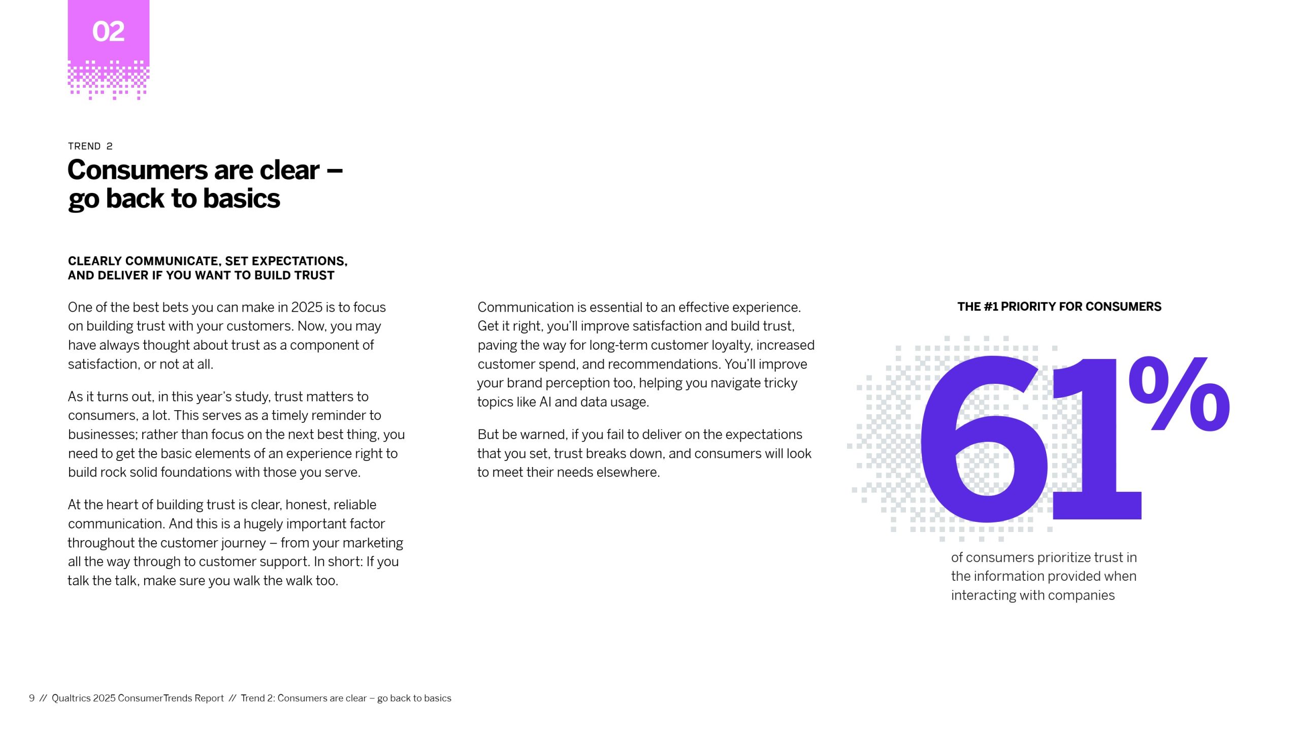 对品牌的信任是忠诚的关键组成部分,但很难赢得,也很容易失去。根据Qualtrics的研究,虽然消费者并不总是相信品牌会做正确的事情,但对他们来说,信任提供给他们的信息是很重要的。