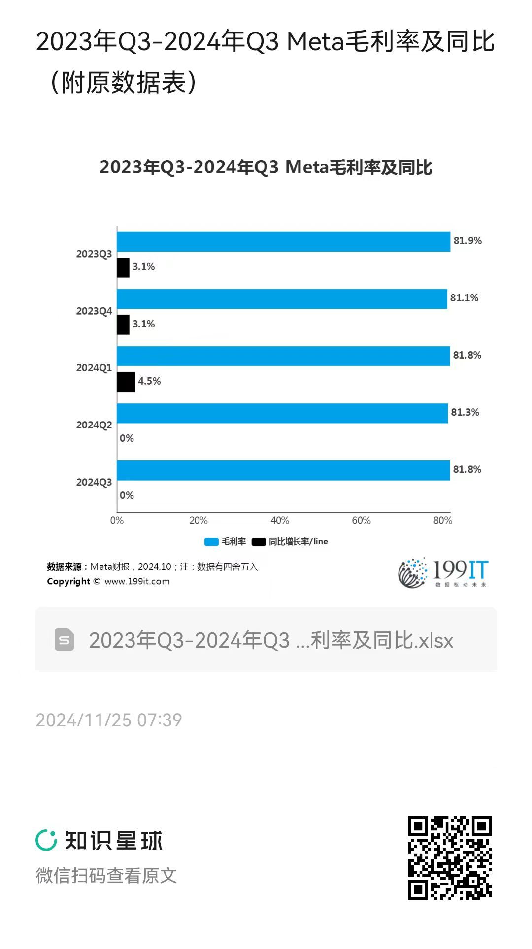 - 2022年Q3-2023年Q3 Meta毛利率及同比(附原数据表)