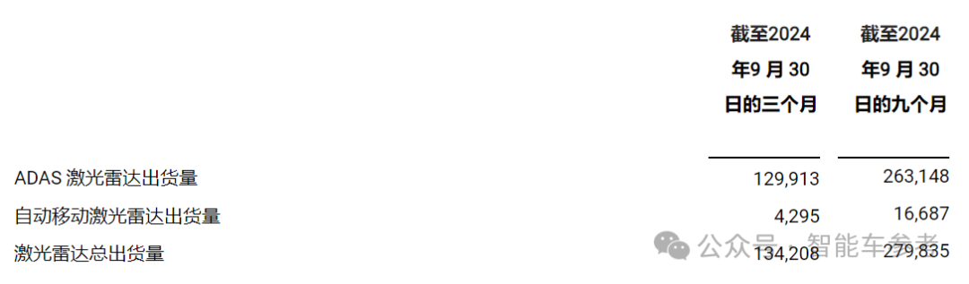今年前三季度,禾赛的激光雷达总共出货量达到279835台,较2023年同期的134380台增长108.2%。