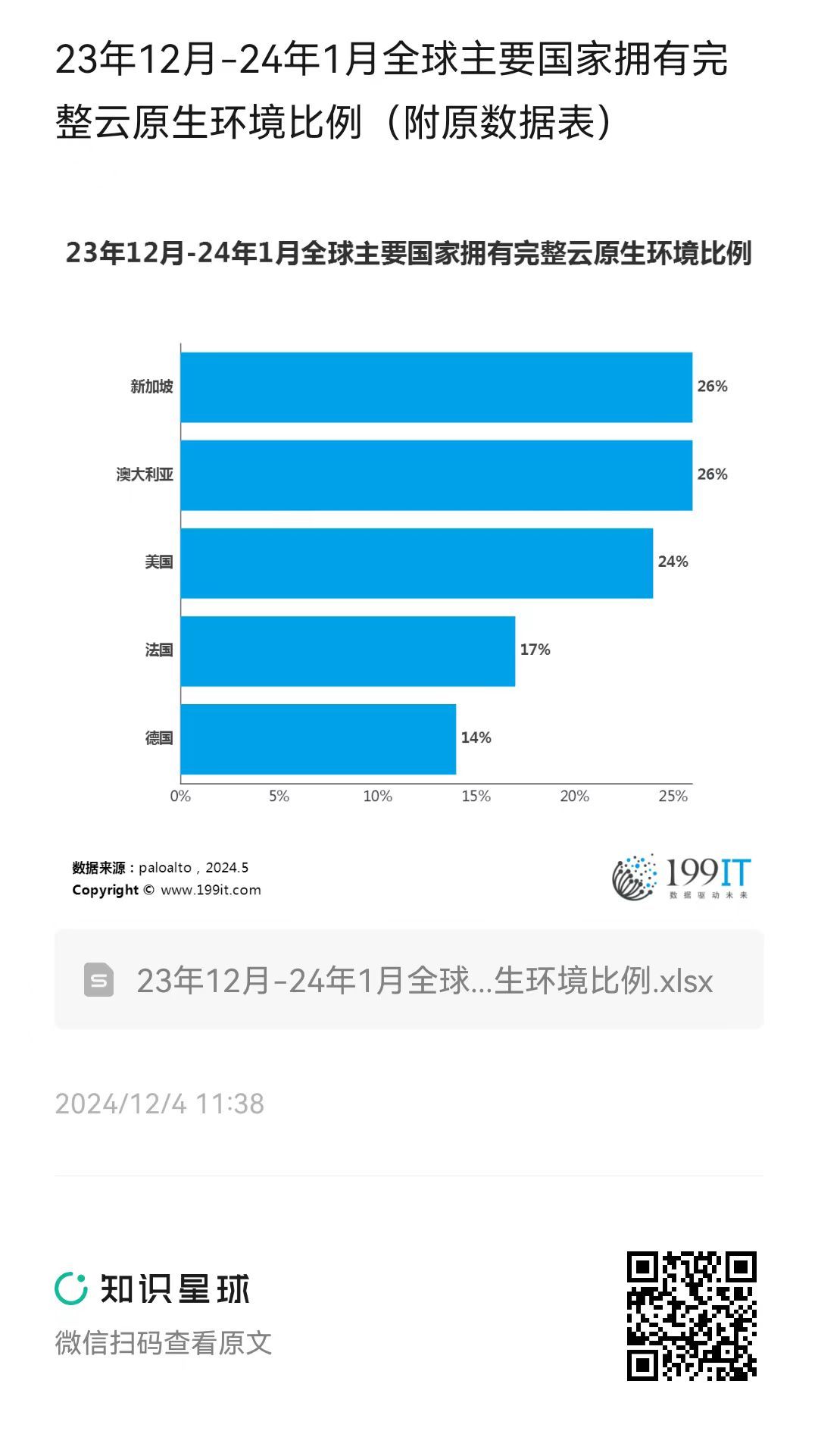 23年12月-24年1月全球主要国家拥有完整云原生环境比例(附原数据表) ​​​