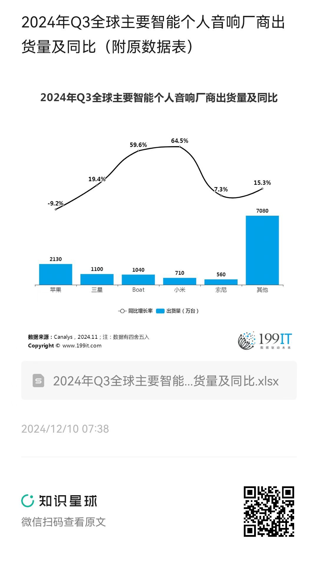 - 2024年Q3全球主要智能个人音响厂商出货量市场份额(附原数据表)