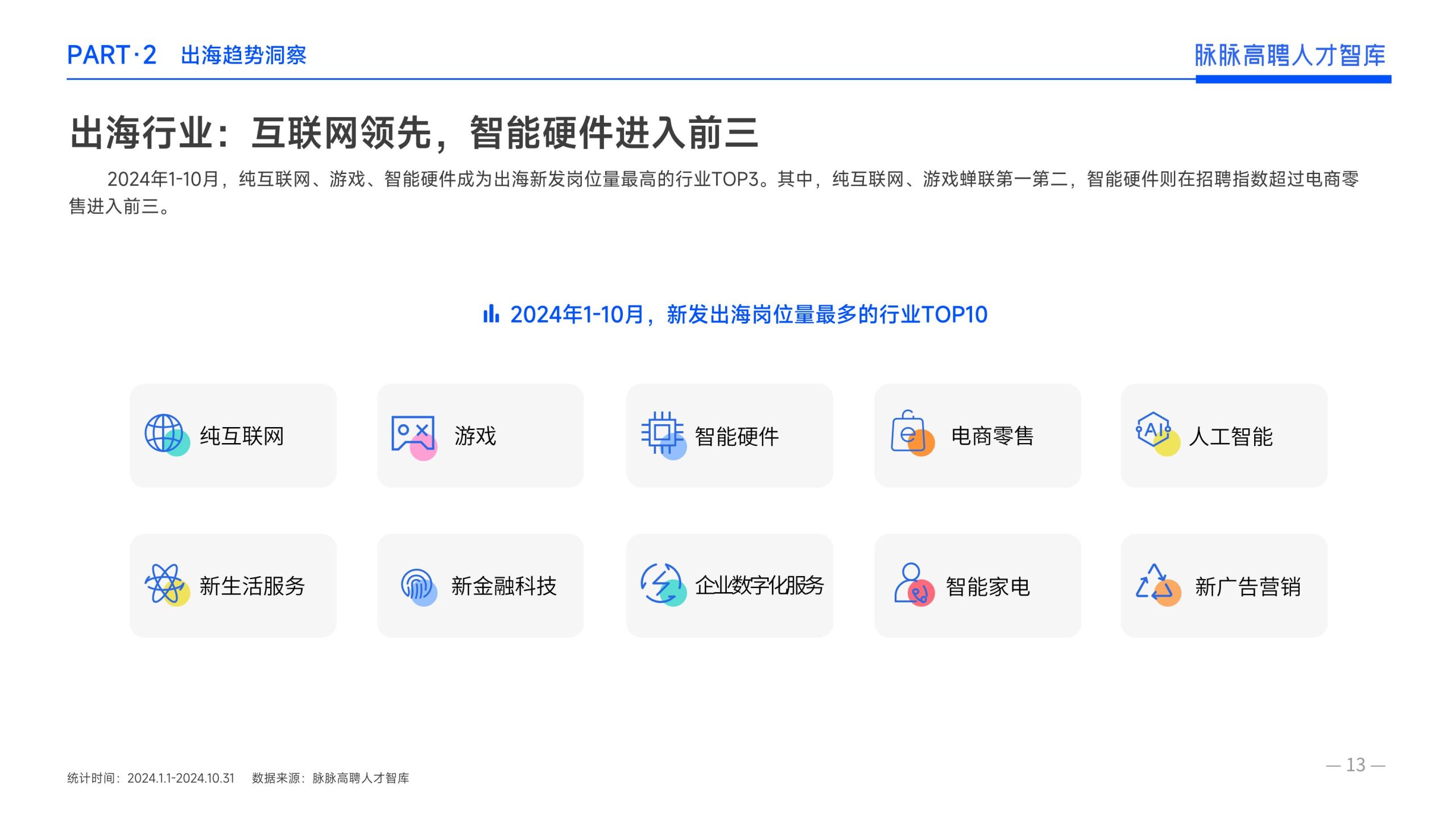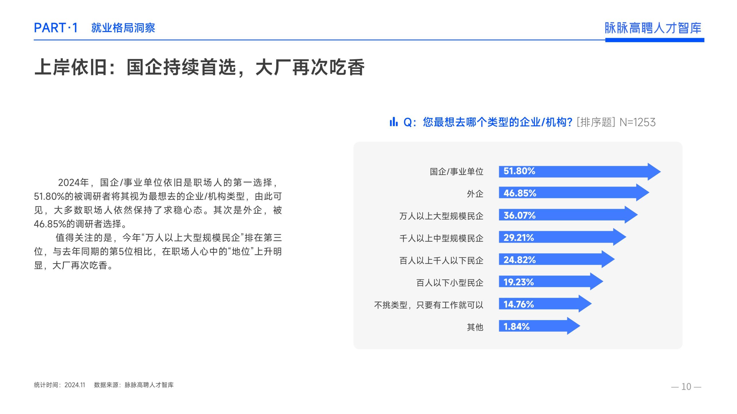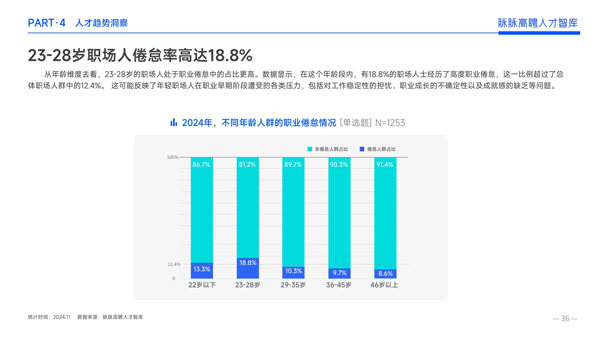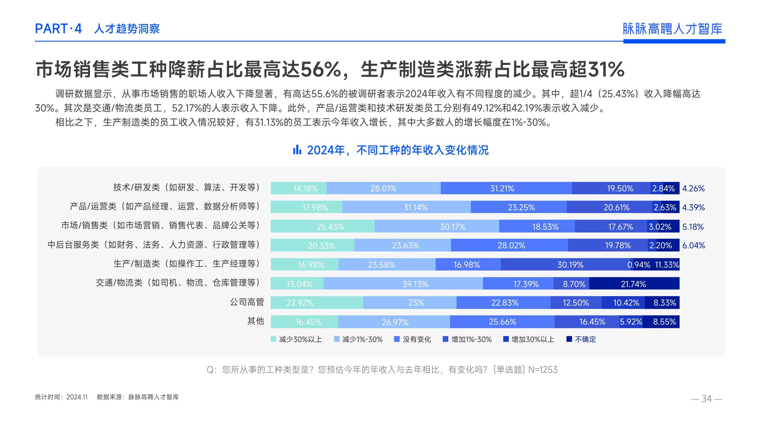 《报告》显示,2022年到2024年10⽉,新经济⾏业⼈才供需⽐逐年上升。2022年全年的⼈才供需⽐为1.29,2023年上升到2.00,相当于2个⼈才争夺1个岗位。2024年1-10⽉,⼈才供需⽐再度攀升⾄2.06,⼈才求职竞争进⼀步加剧。 虽然求职难度较⼤,但岗位薪资保持了上升态势。2022年全年新发岗位的平均⽉薪为41394元,2023年上升⾄42789元,2024年1-10⽉,平均⽉薪再度微涨至42874元。