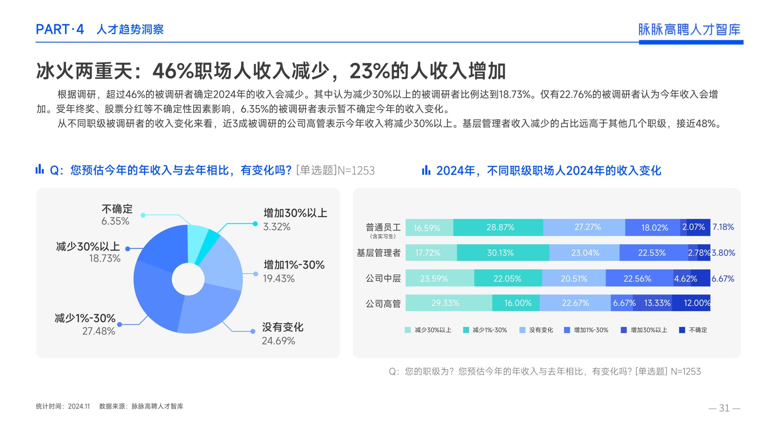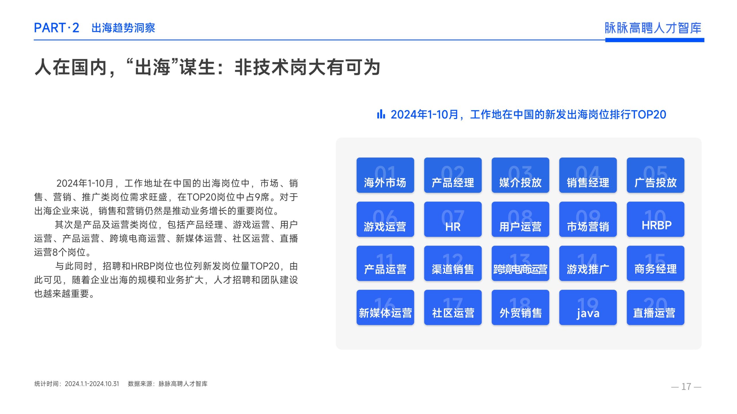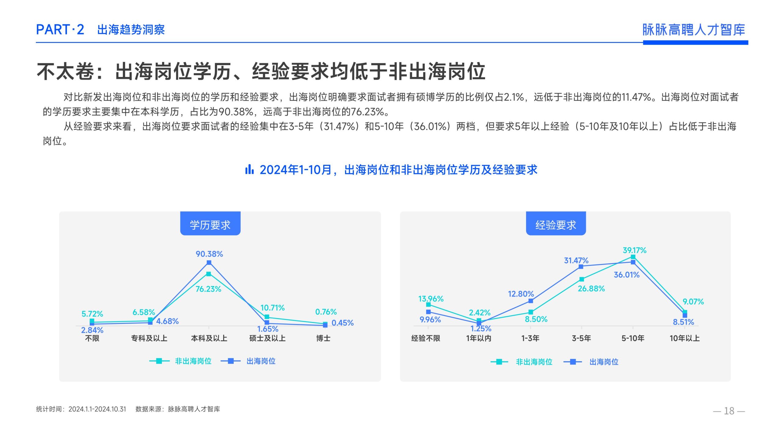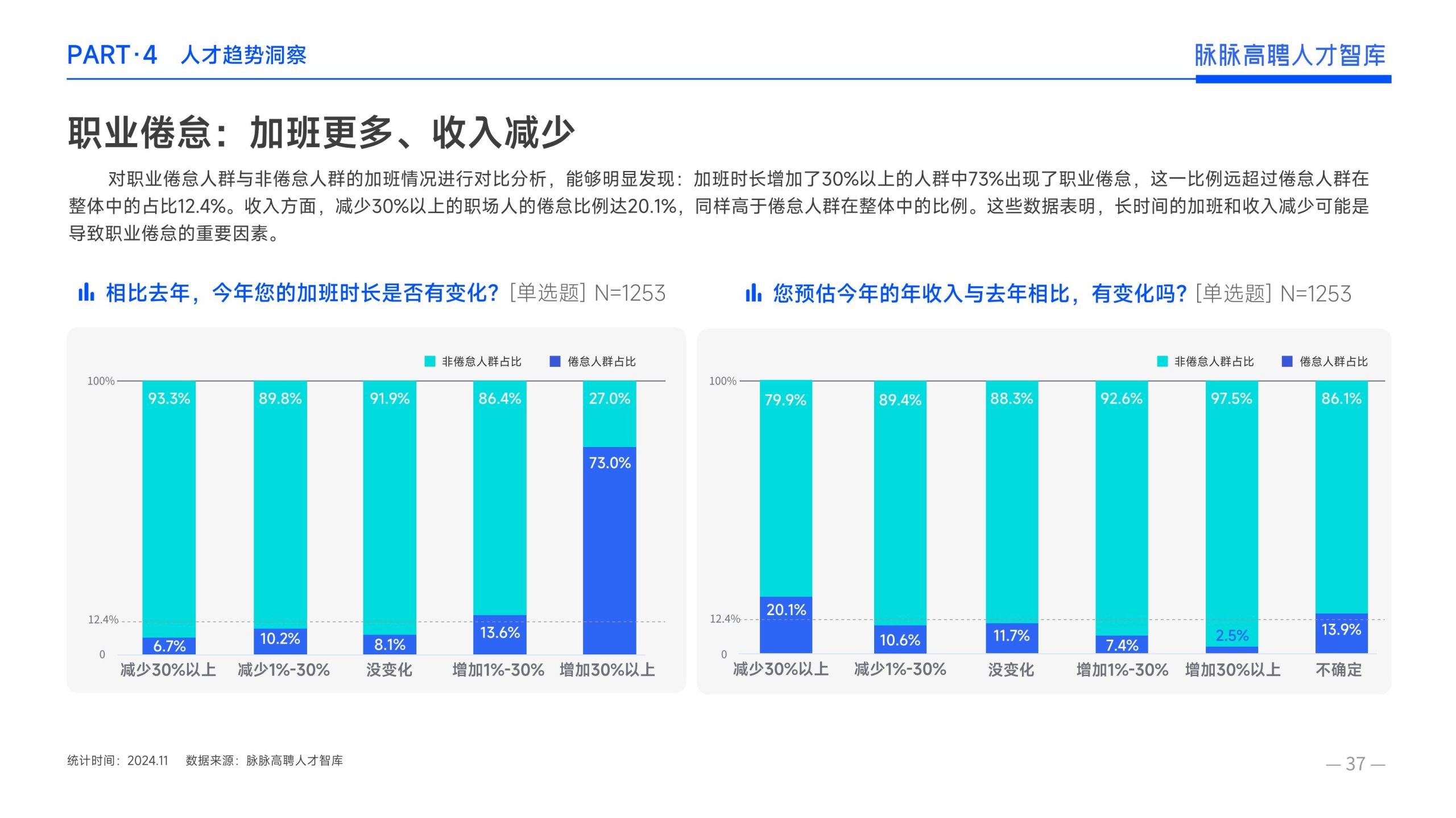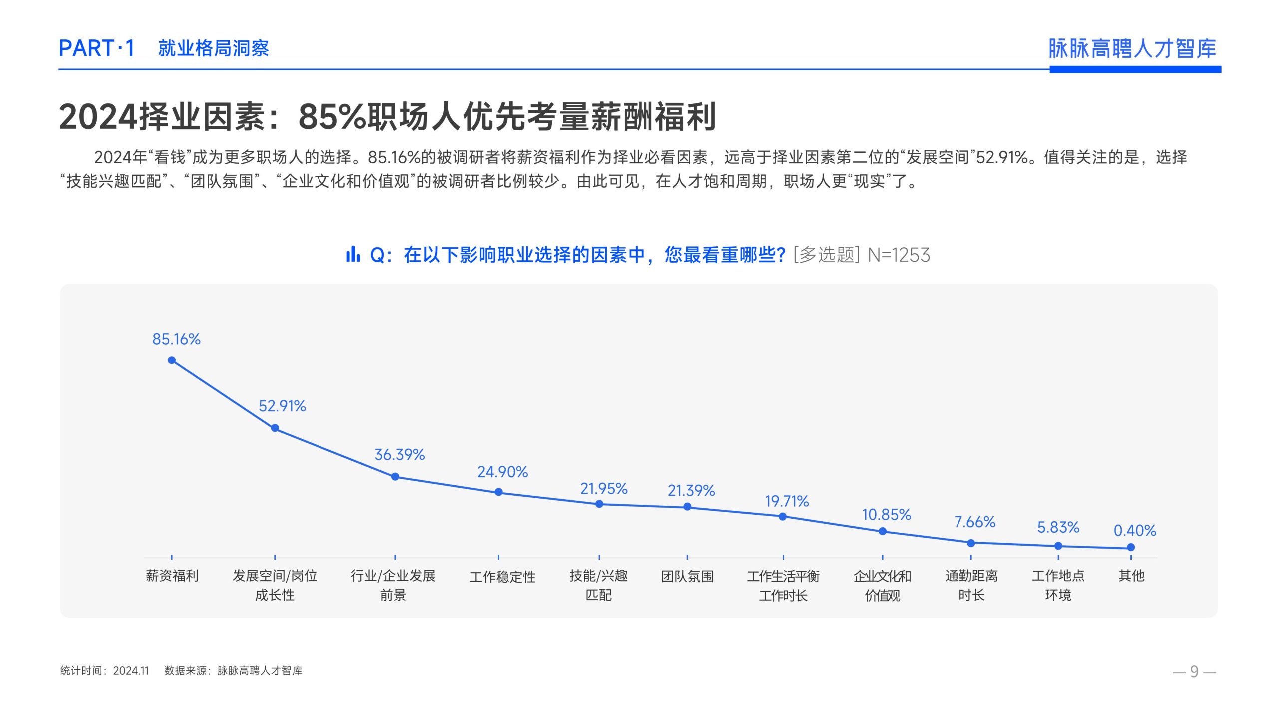 《报告》显示,2022年到2024年10⽉,新经济⾏业⼈才供需⽐逐年上升。2022年全年的⼈才供需⽐为1.29,2023年上升到2.00,相当于2个⼈才争夺1个岗位。2024年1-10⽉,⼈才供需⽐再度攀升⾄2.06,⼈才求职竞争进⼀步加剧。 虽然求职难度较⼤,但岗位薪资保持了上升态势。2022年全年新发岗位的平均⽉薪为41394元,2023年上升⾄42789元,2024年1-10⽉,平均⽉薪再度微涨至42874元。