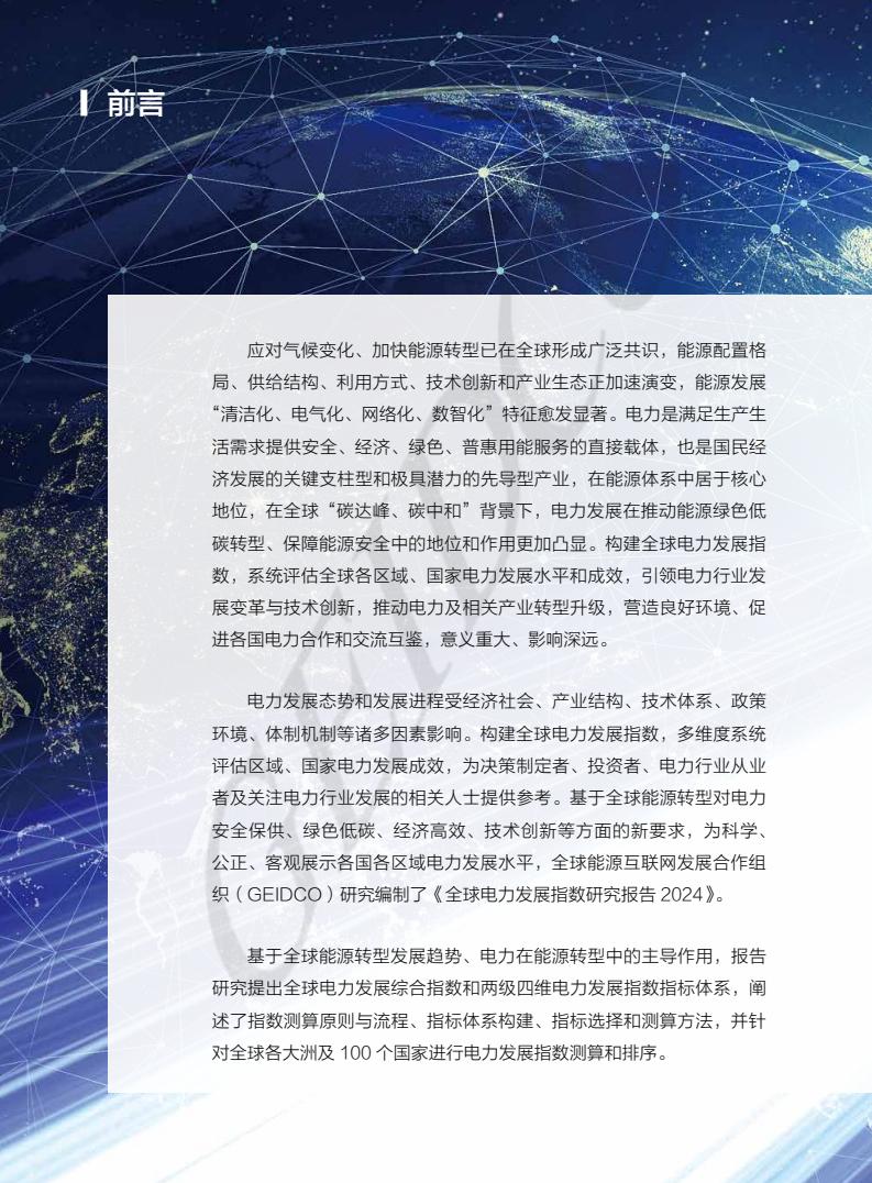 电力是构建清洁低碳、安全高效能源体系的核心和关键环节,电力是清洁能源开发利用的主要方式,电力能够实现多种能源间的灵活高效转换、是终端替代化石能源的主要选择。电力系统连接着水能、风能、太阳能等清洁一次能源和热能、氢能等二次能源,是实现能源高效配置的重要枢纽和平台载体。在全球“碳达峰、碳中和”背景下,电力发展在推动能源转型变革、保障能源安全中的地位和作用更加凸显,对实现能源可持续发展和应对气候变化具有重要意义。