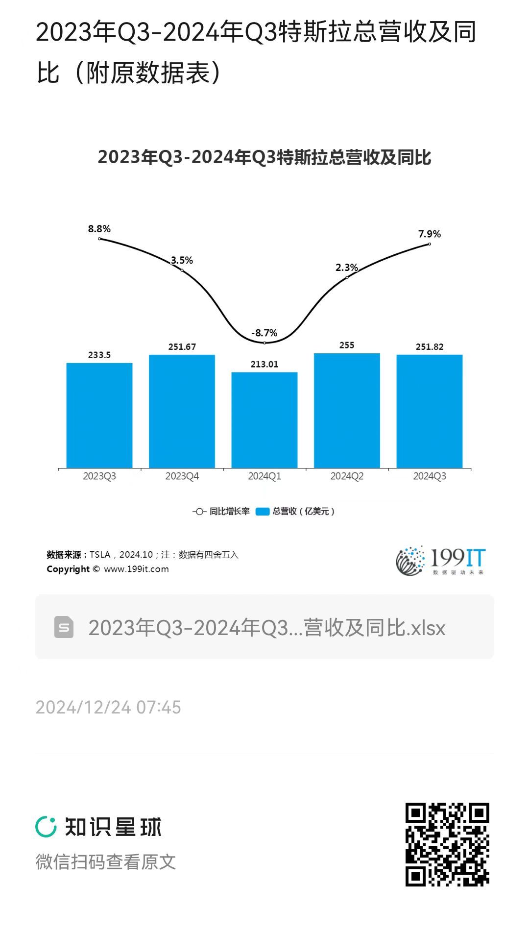 - 2022年Q3-2023年Q3特斯拉总营收及同比(附原数据表)