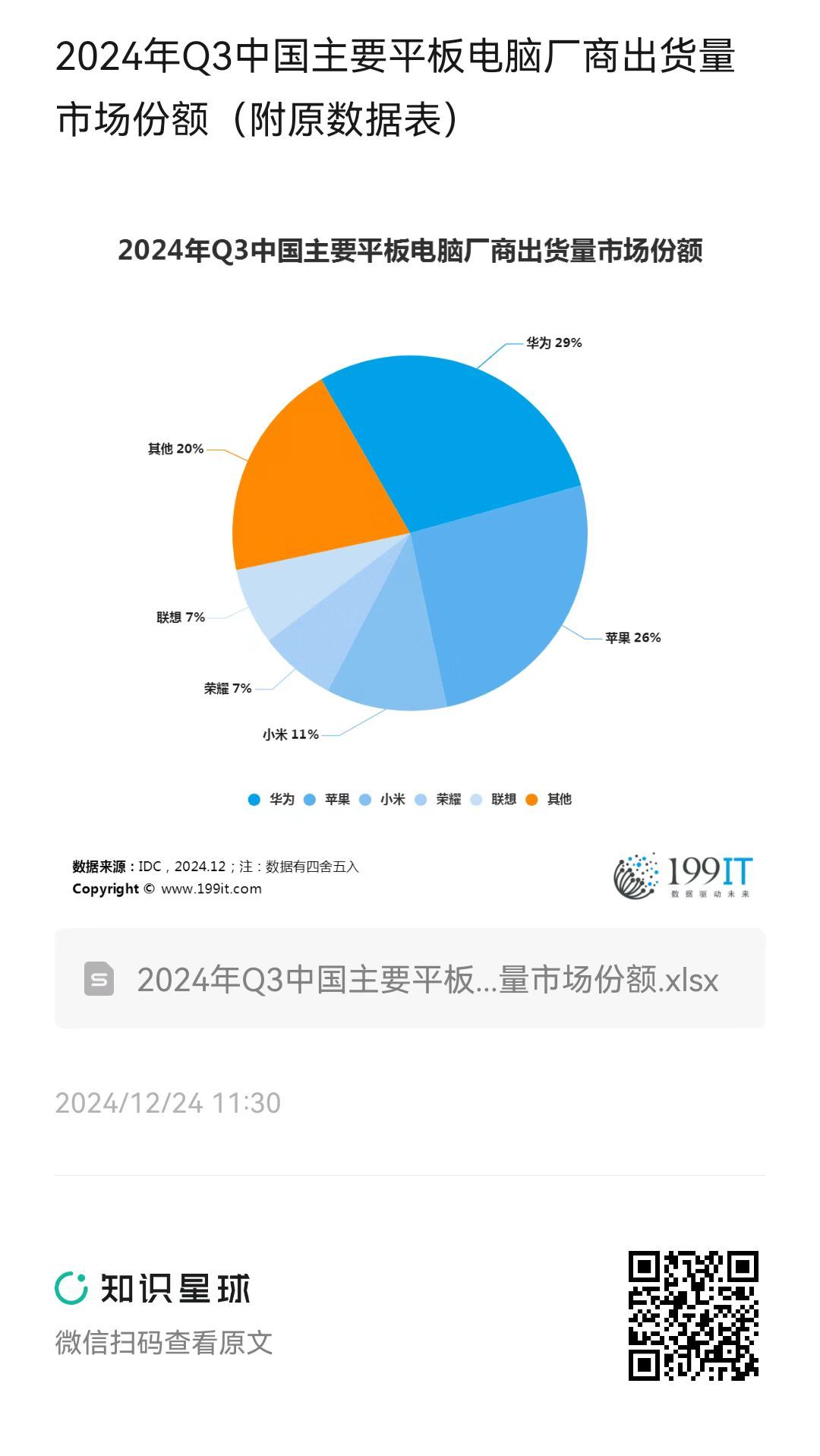 - 2024年Q3中国主要平板电脑厂商出货量市场份额(附原数据表)