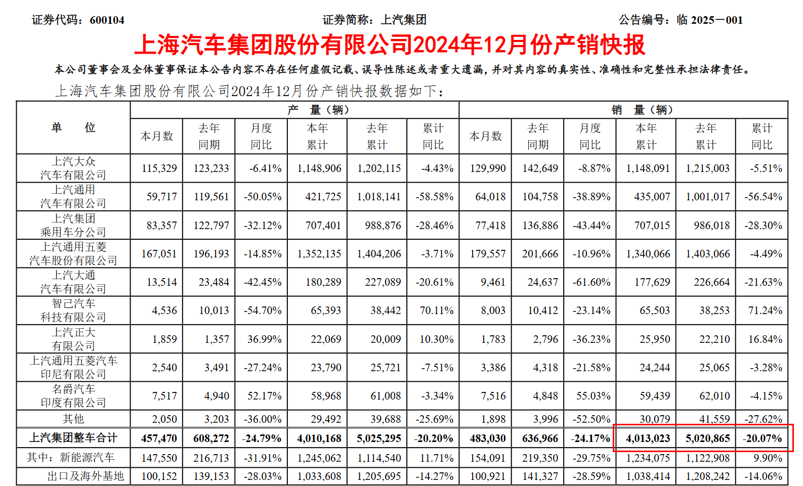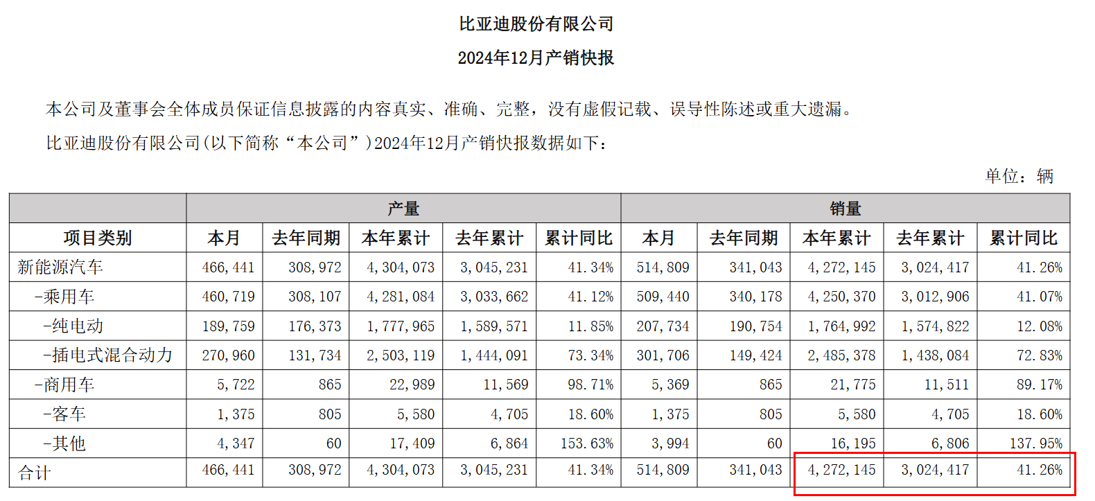 进入2025年后,车企陆续公布了2024年全年销量。比亚迪公布的销量显示,2024年共计销售新车427.21万辆,同比大涨41.26%。而此前的国内车企销冠上汽集团,2024年销量为401.3万辆,比亚迪首次反超上汽集团成为中国车企销冠,正式终结了上汽集团连续18年国内销量最高车企集团的纪录。