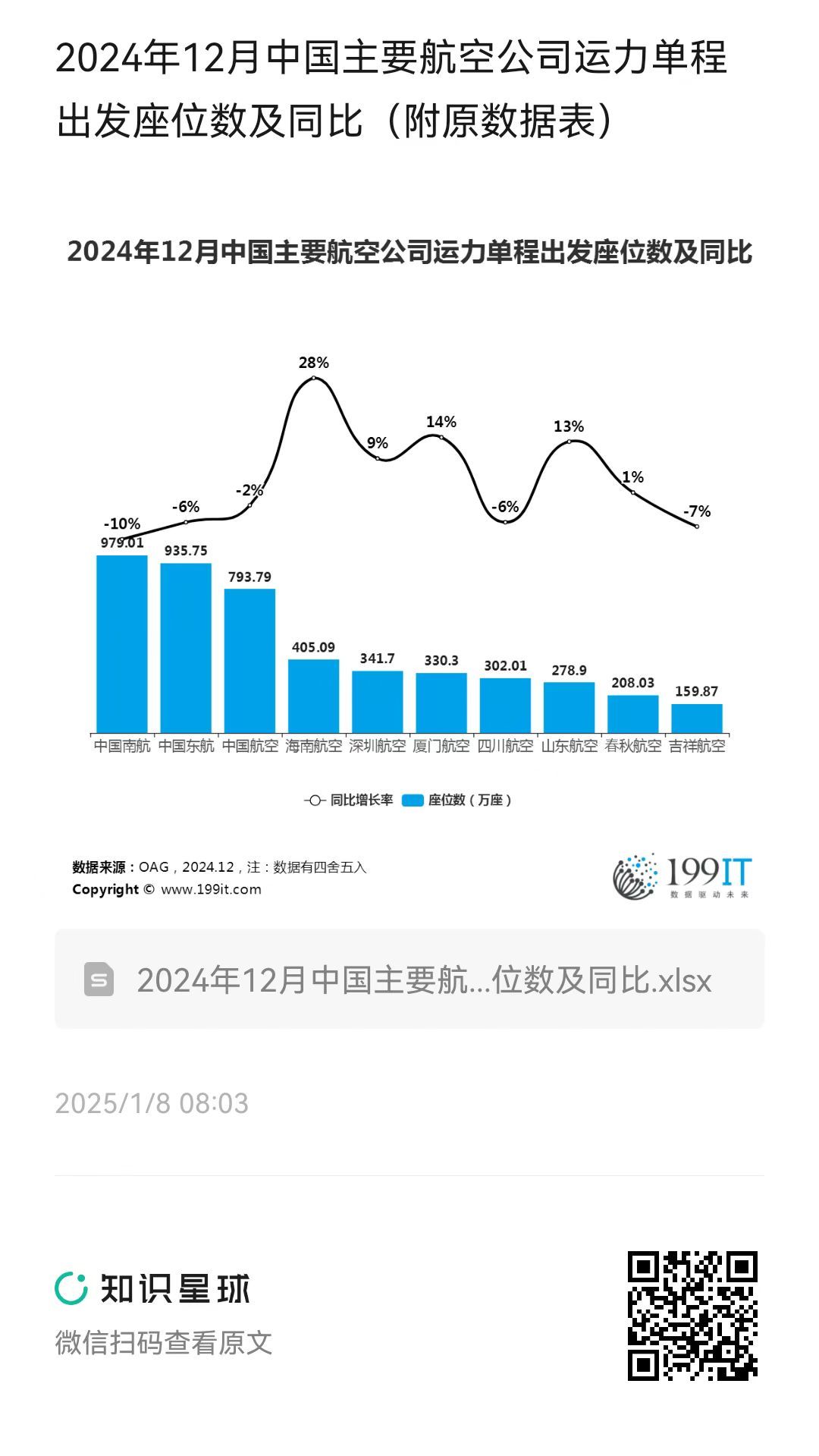 - 2024年11月中国主要航空公司运力单程出发座位数及同比(附原数据表)