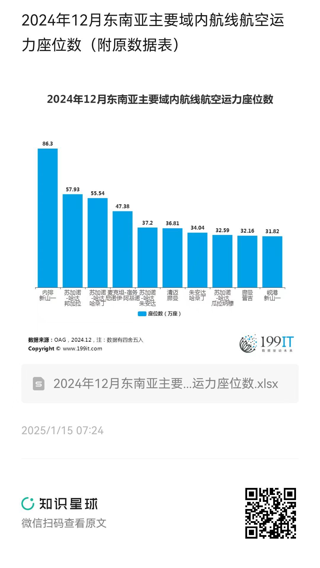 - 2024年10月东南亚主要域内航线航空运力座位数(附原数据表)