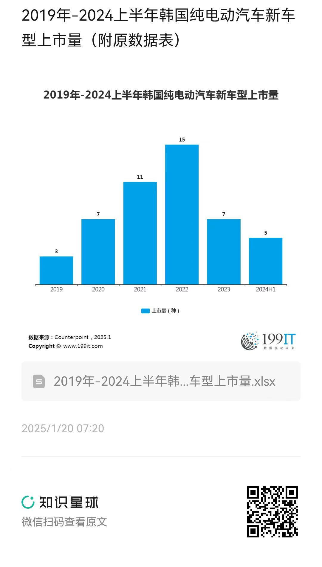 2019年-2024上半年韩国纯电动汽车新车型上市量(附原数据表) ​​​
