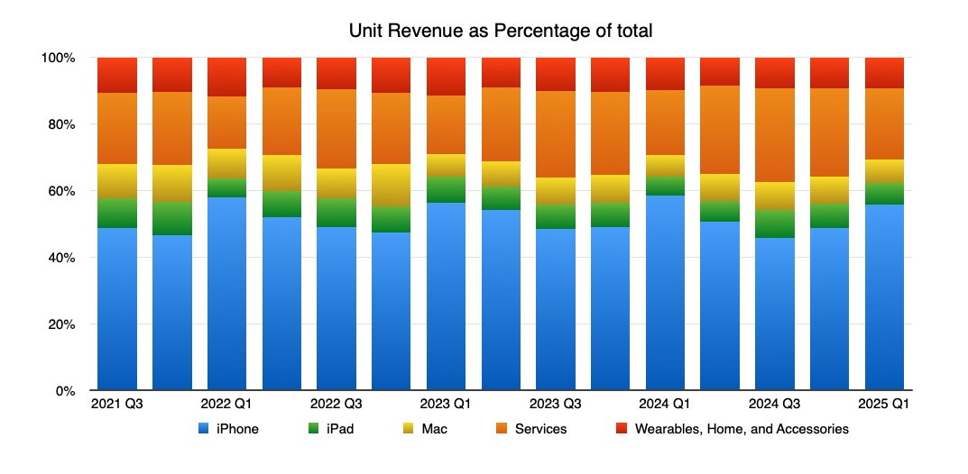 2025 年第一季度的总收入为 1243 亿美元。 随着苹果向 Apple Vision Pro 等新产品类别拓展,其收入和安装量也必将增长。