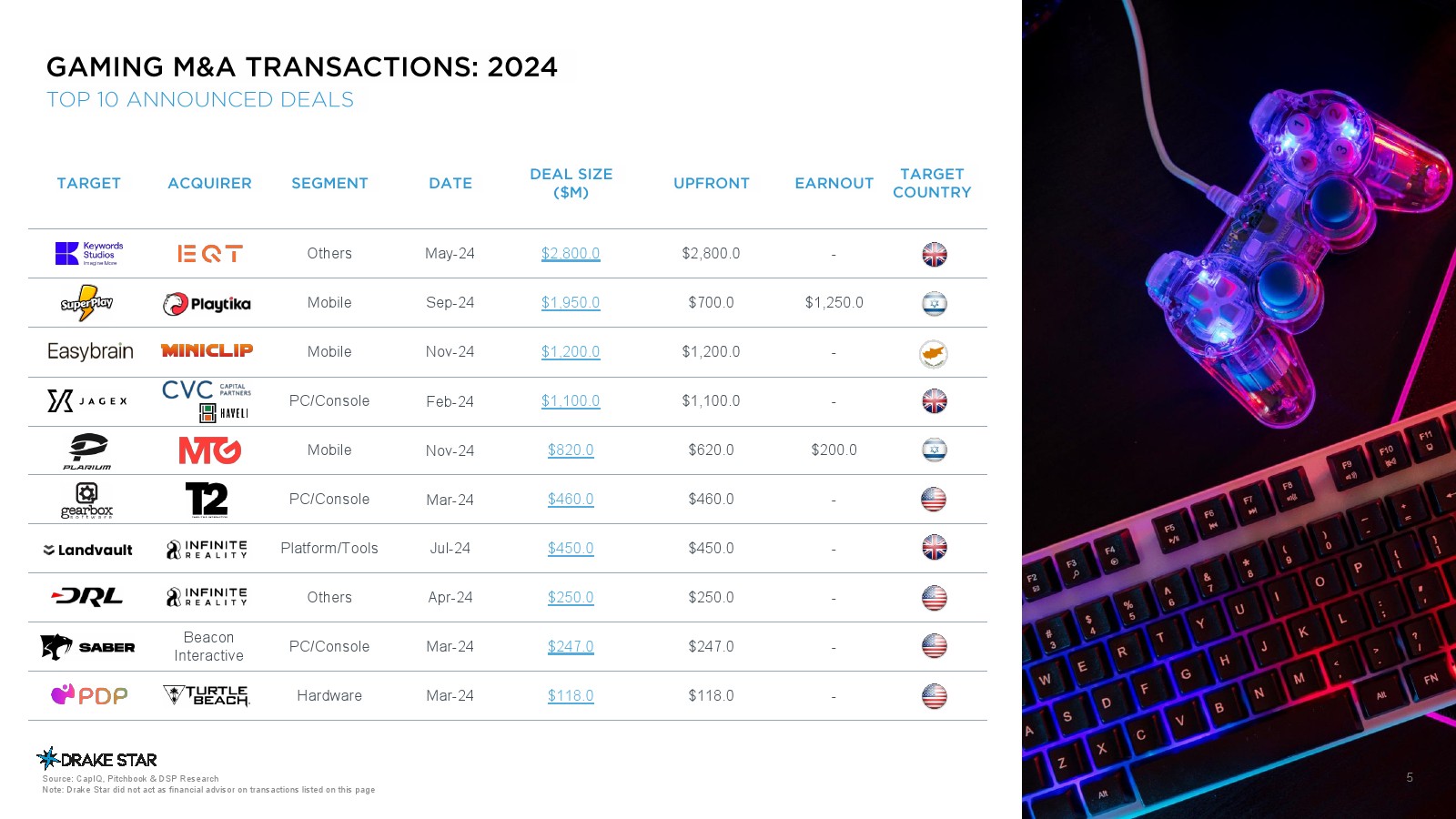 报告分析了2024年和最后一个季度的游戏和电子竞技交易,并概述了未来一年及以后的预期。