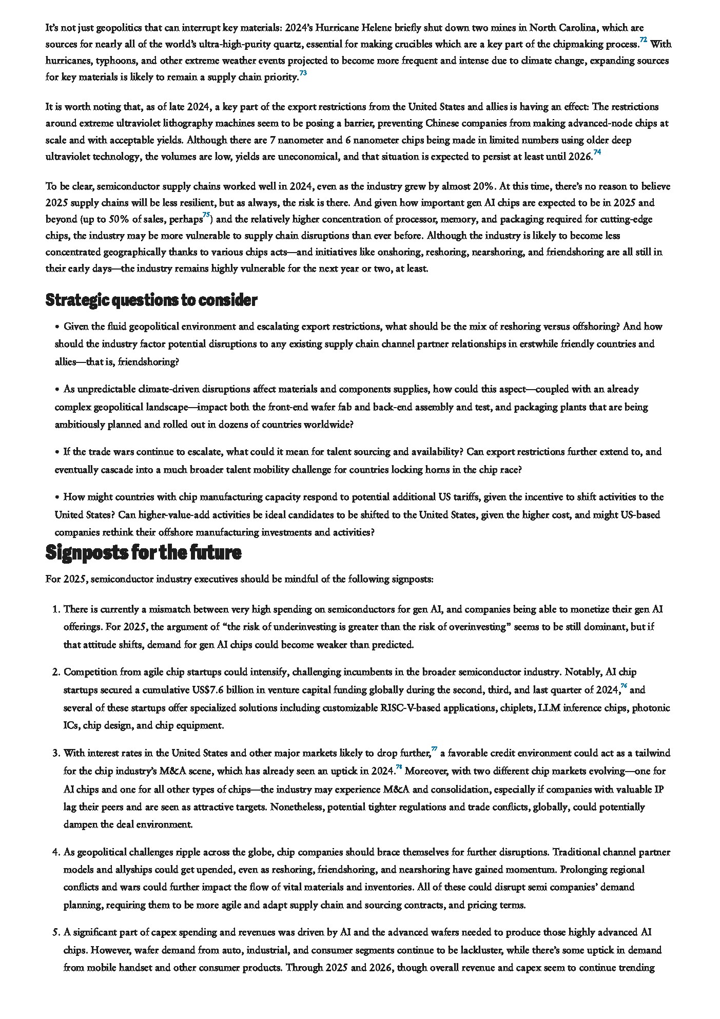 股市通常是行业表现的领先指标:截至2024年12月中旬,全球十大芯片公司的总市值为6.5万亿美元,比2023年12月中旬的3.4万亿美元增长了93%,比2022年11月中旬的1.9万亿美元增长了235%。值得注意的是,过去两年的“平均”芯片股表现一直是“两个市场的故事”:参与生成式人工智能芯片市场的公司表现优于平均水平,而没有涉足该市场的公司表现不佳。