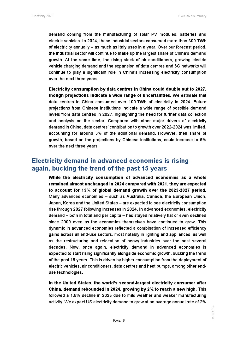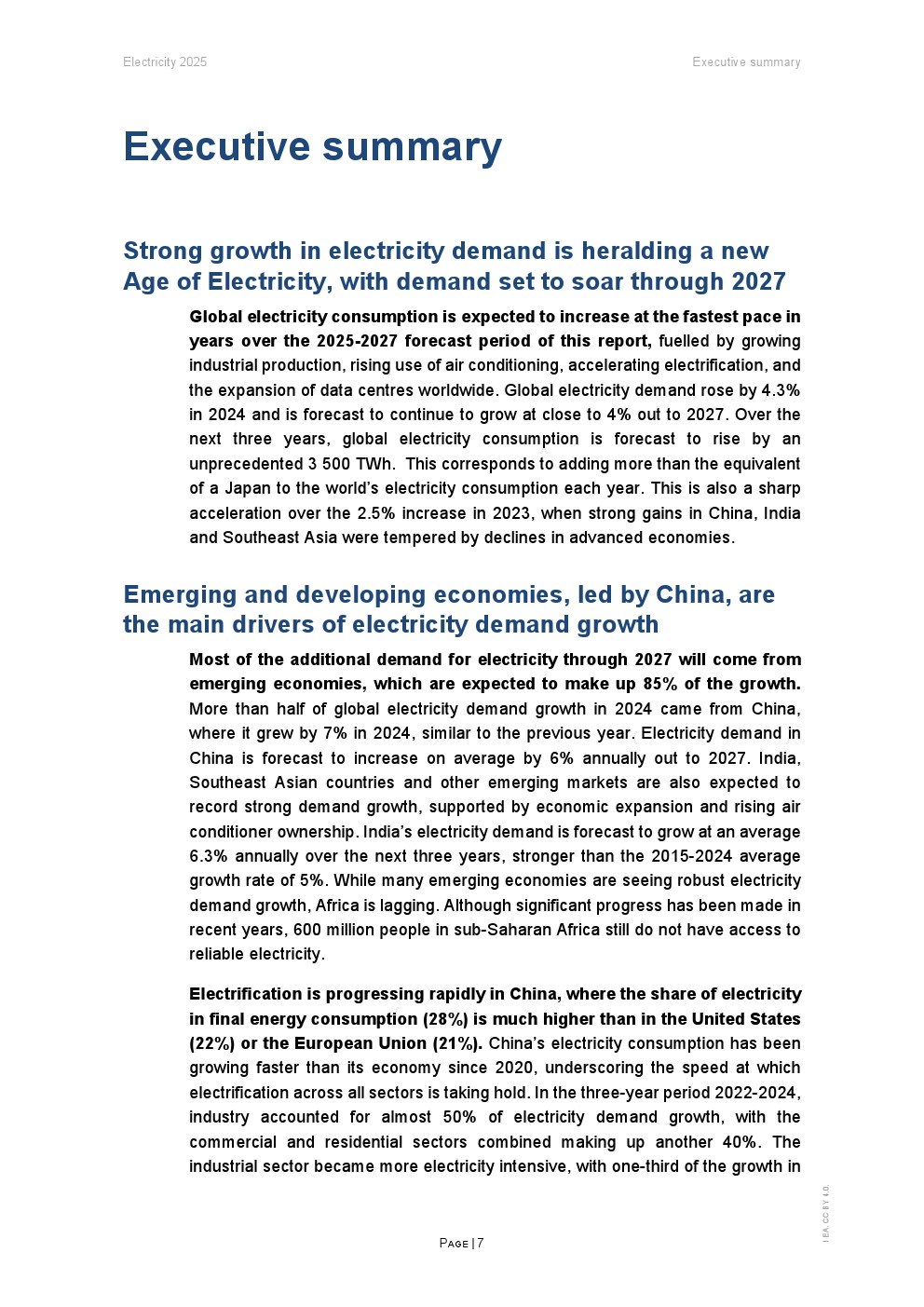 根据国际能源署(IEA)发布的“2025年电力报告”,全球电力消费预计将以近年来最快的速度增长,预计2027年年均增长接近4%,原因是经济各领域的电力使用量不断攀升。