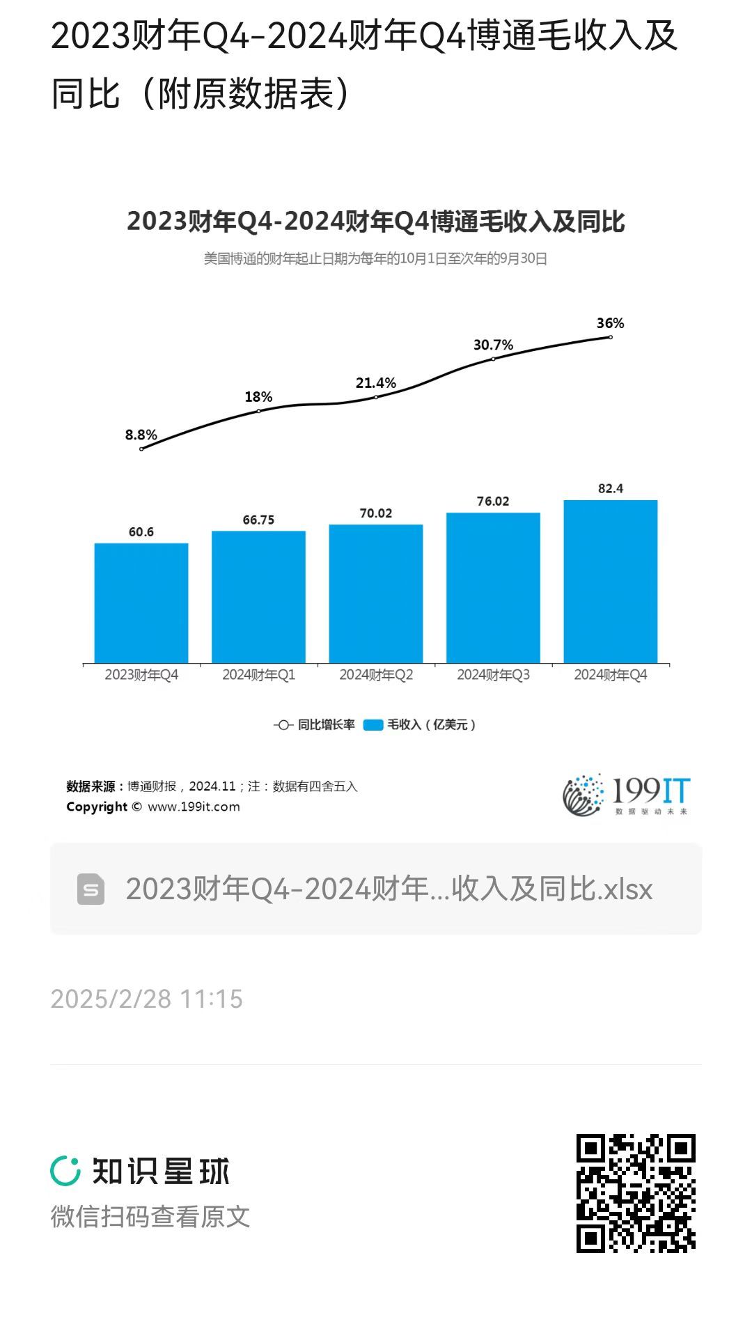 2023财年Q4-2024财年Q4博通毛收入及同比(附原数据表) ​​​