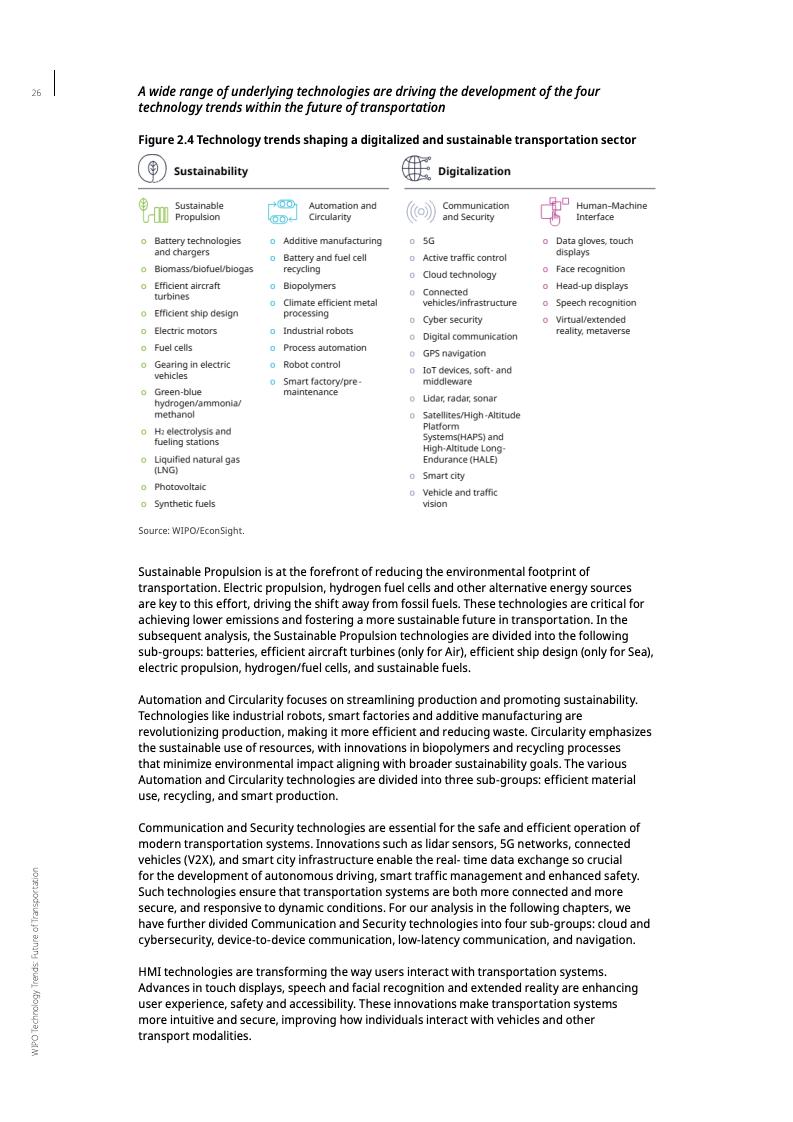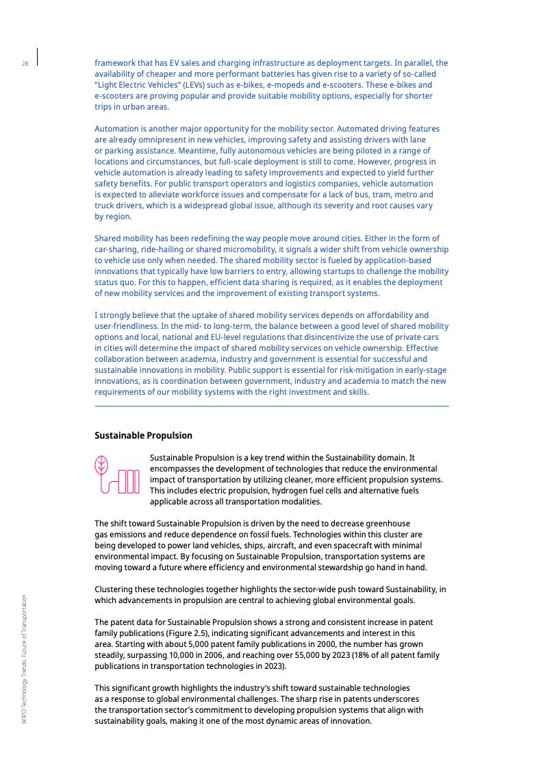 报告强调,可持续推进领域的专利增长最为显著,特别是在电动汽车电池和氢燃料电池方面。这些技术创新旨在以更清洁的方式运输人员和货物,助力全球减排目标的实现。