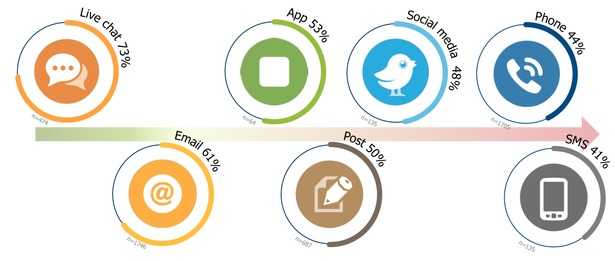 毫不为奇的是,电话和电子邮件是用户联系客户服务最常使用的沟通方式。