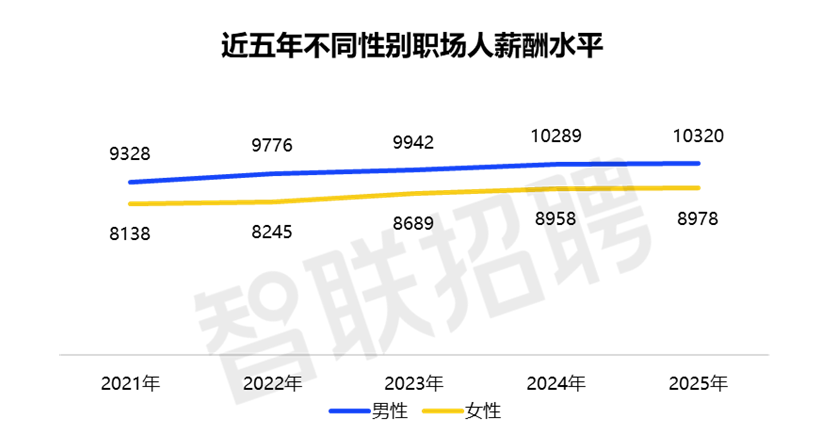 据联合国经济和社会事务部预计,2025 年全球经济增速预计为 2.8%,与 2024 年持平。在经济增长相对平稳的背景下,职场人薪酬小幅上升。调研数据显示,当前女性平均月薪为 8978 元,较去年略有上涨,女性在各个行业中的努力和贡献逐渐获得了更多的认可和回报。当前男性平均月薪为 10320 元,男女平均薪酬差距为 13%,与去年基本持平。