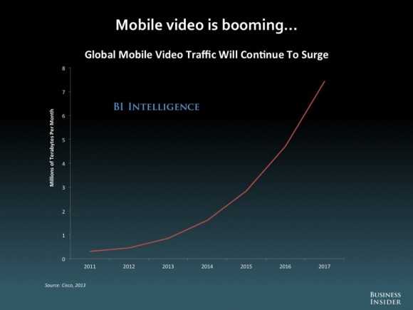事实上,截止2011年,即使房租的数量在增长,留在自家看电视的人也越来越少了。与此同时,移动视频的观看量却在迅速上升。两者之间的关联,不言自明。
