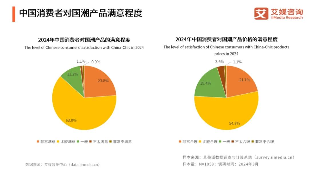 iiMedia Research(艾媒咨询)调研数据显示,中国消费者对国潮产品总体满意度较高,认为市场上的商品定价也较为合理。