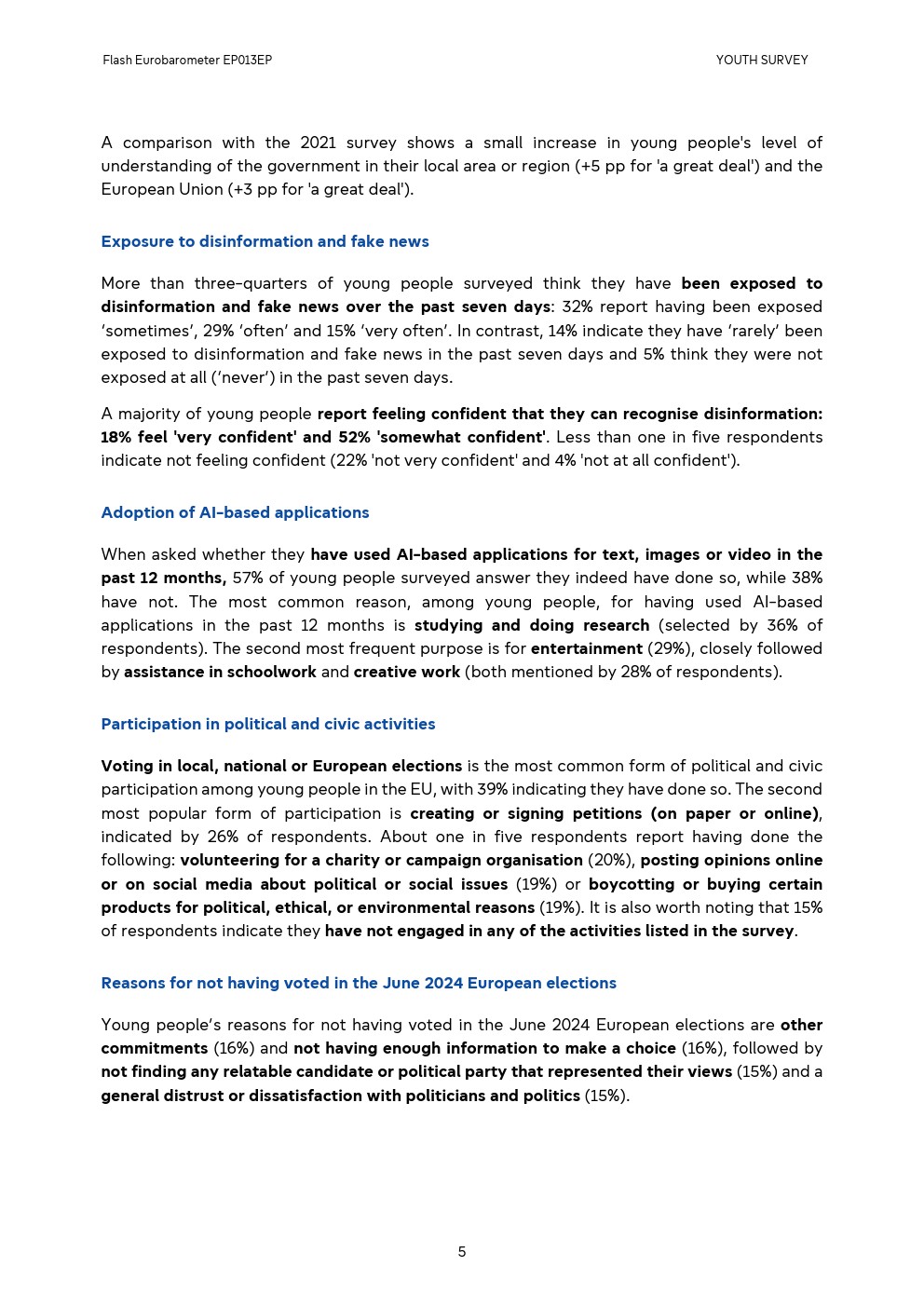 年轻人未参加2024年6月欧洲选举投票的原因是其他承诺(16%)和没有足够的信息来做选择(16%),其次是找不到任何代表他们观点的候选人或政党(15%)以及对政治家和政治的普遍不信任或不满(15%)。