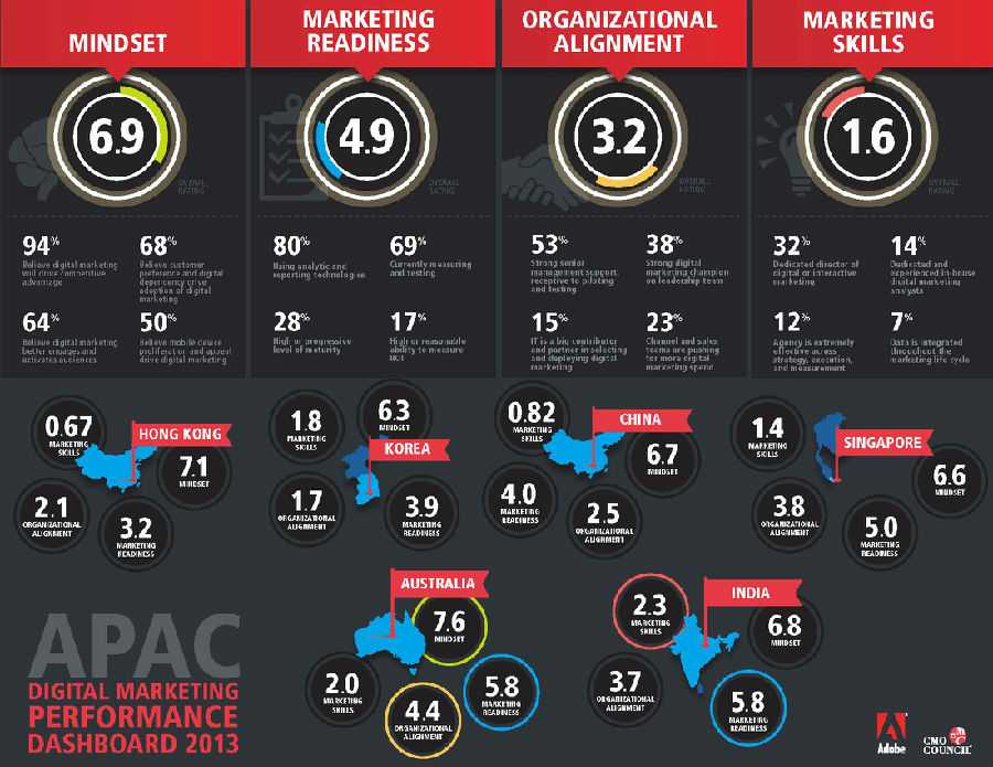 大部分(69%)亚太区的市场营销人员都在评估和检验他们的数字营销活动,其中有80%使用营销分析和报告技术。然而,调查显示,企业内部以及外部代理公司人员缺乏分析技能,来分析这些重要的衡量指标。