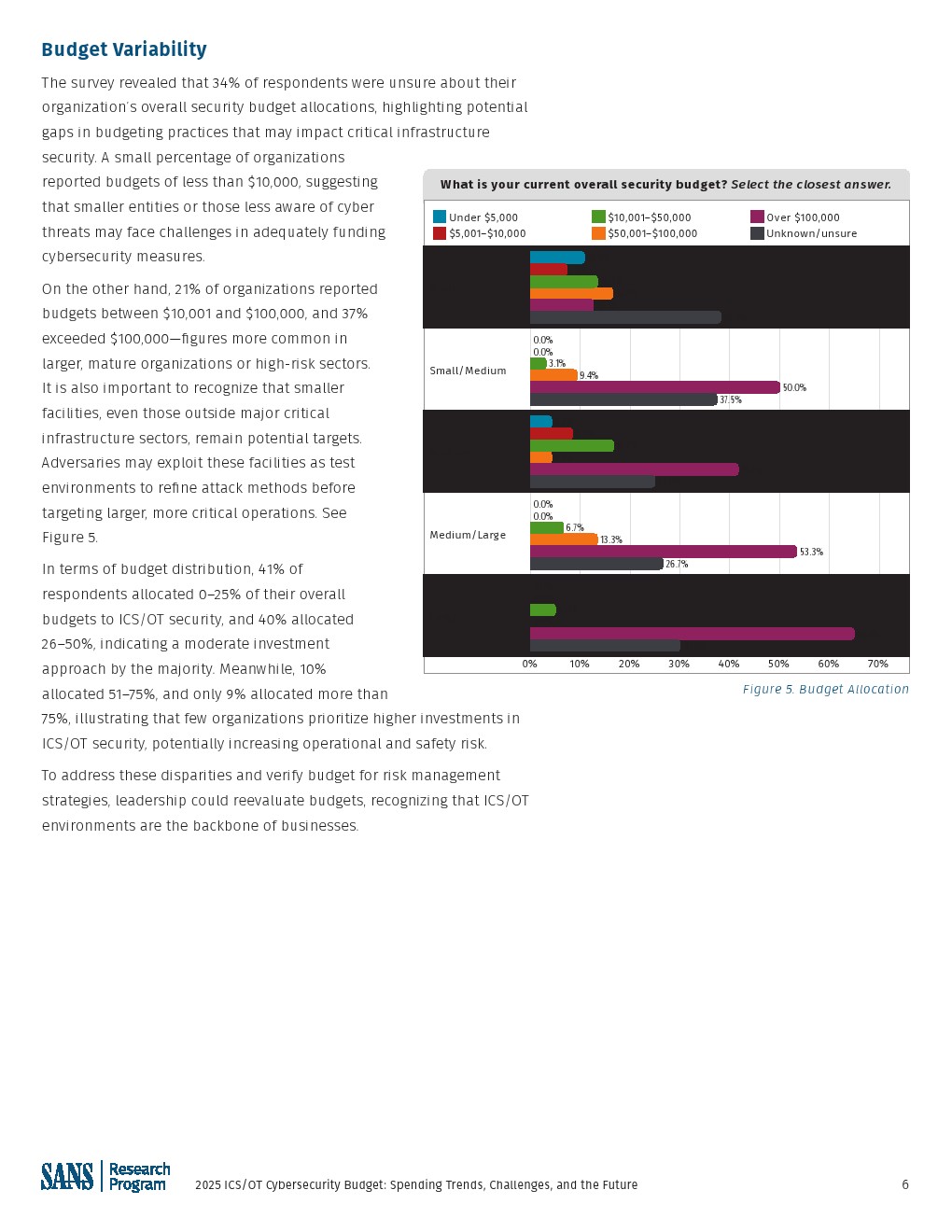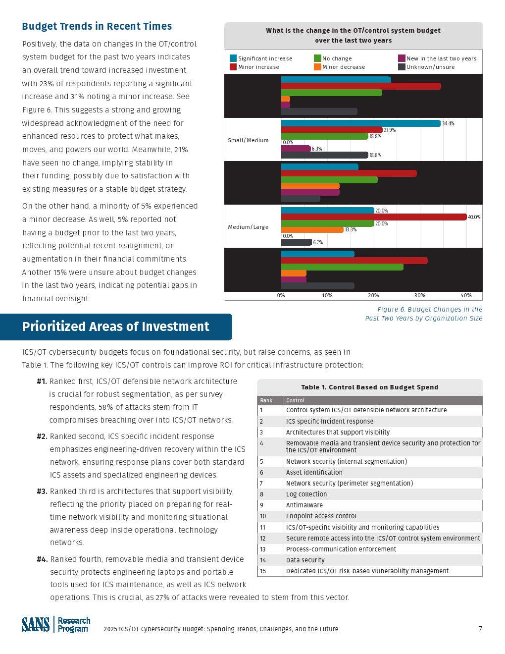 预算趋势——近年来,ICS/OT网络安全预算有所增加,55%的受访者表示过去两年预算有所增长。