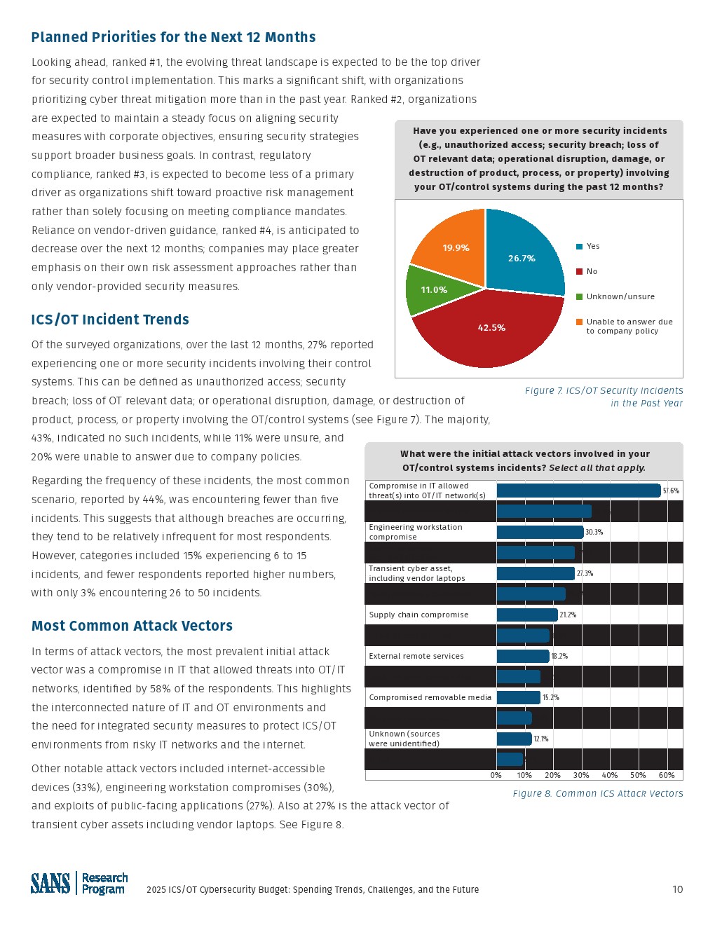 事件频率——27%的组织报告在过去一年中经历了一次或多次涉及ICS/OT系统的安全事件。