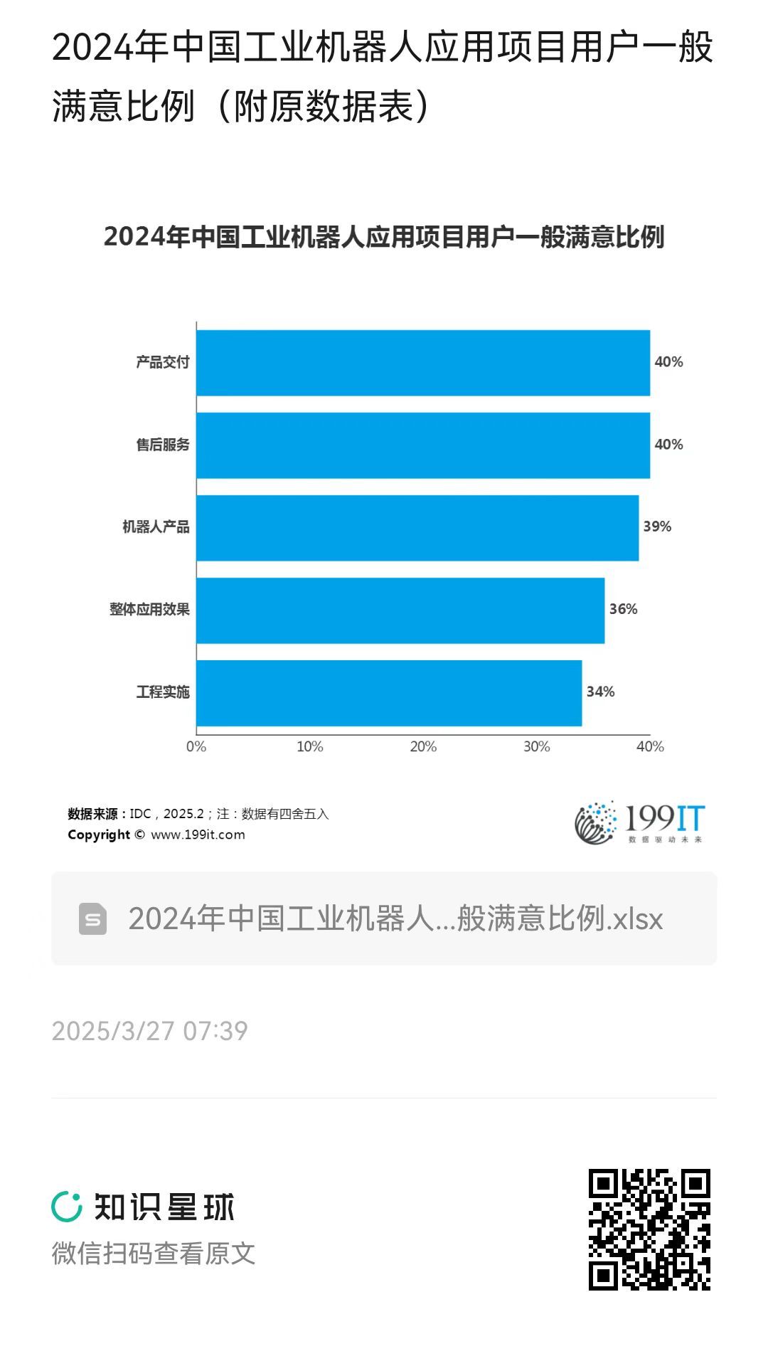 2024年中国工业机器人应用项目用户一般满意比例(附原数据表) ​​​
