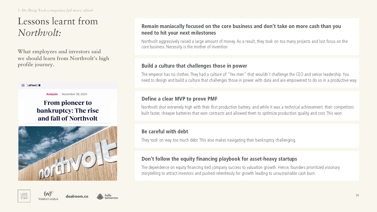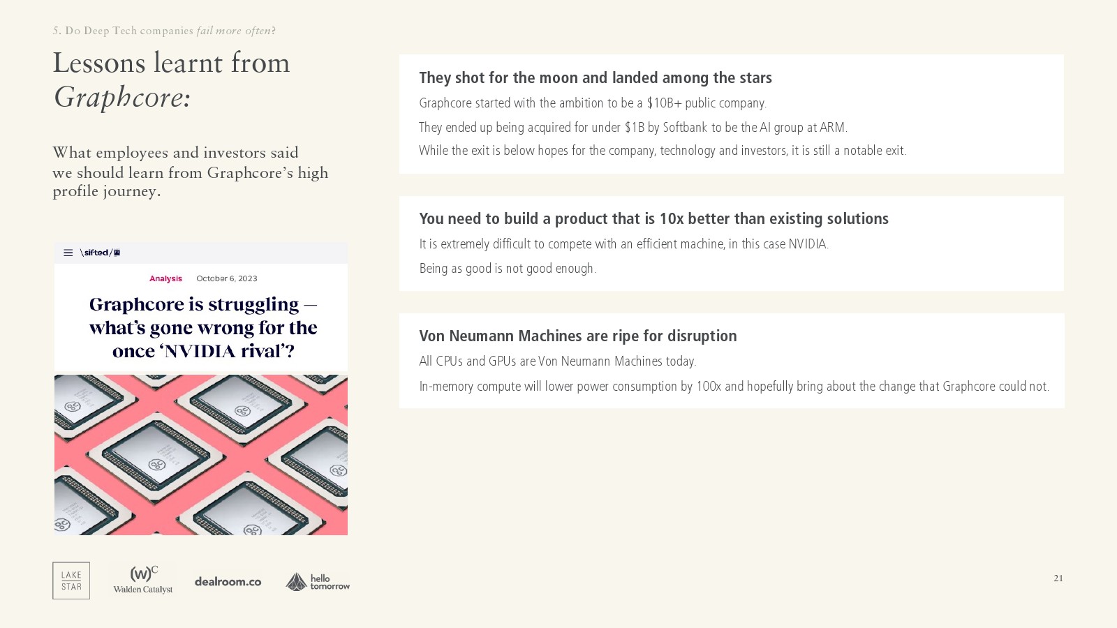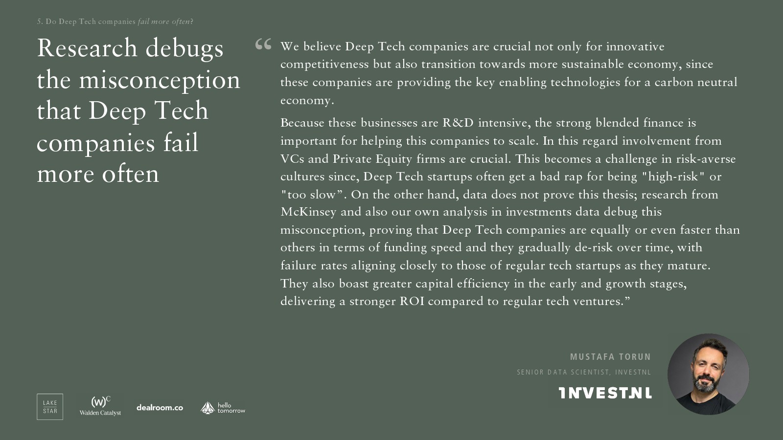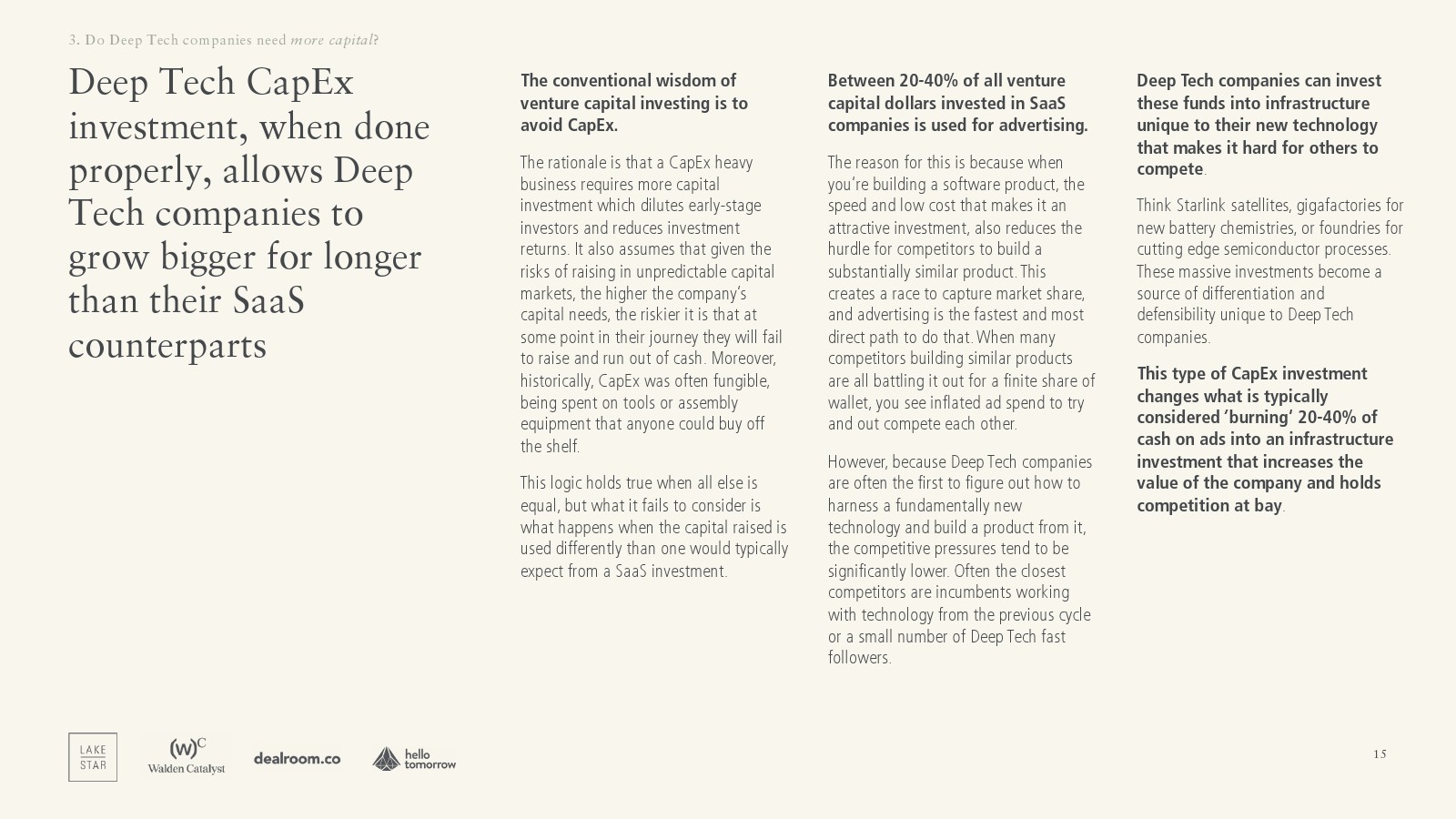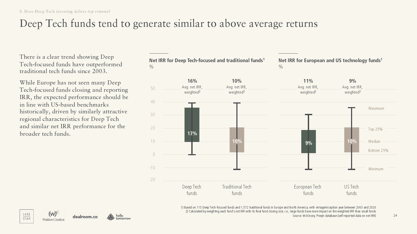 深度科技常常被误解。它专注于首次将科学和工程突破应用于产品。它是风险投资的起源,并通过催化变革性技术趋势在历史上塑造了区域主权。尽管通常需要更多资金,但大部分资金用于构建知识产权护城河,而不是广告。较长的开发时间延迟了初始收入,但一旦技术成熟,收入增长往往会加速。退出市场仍不成熟,但总体回报表明,深度科技投资组合优于传统科技。