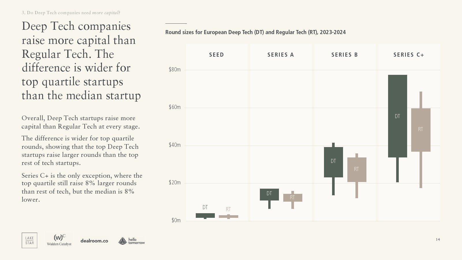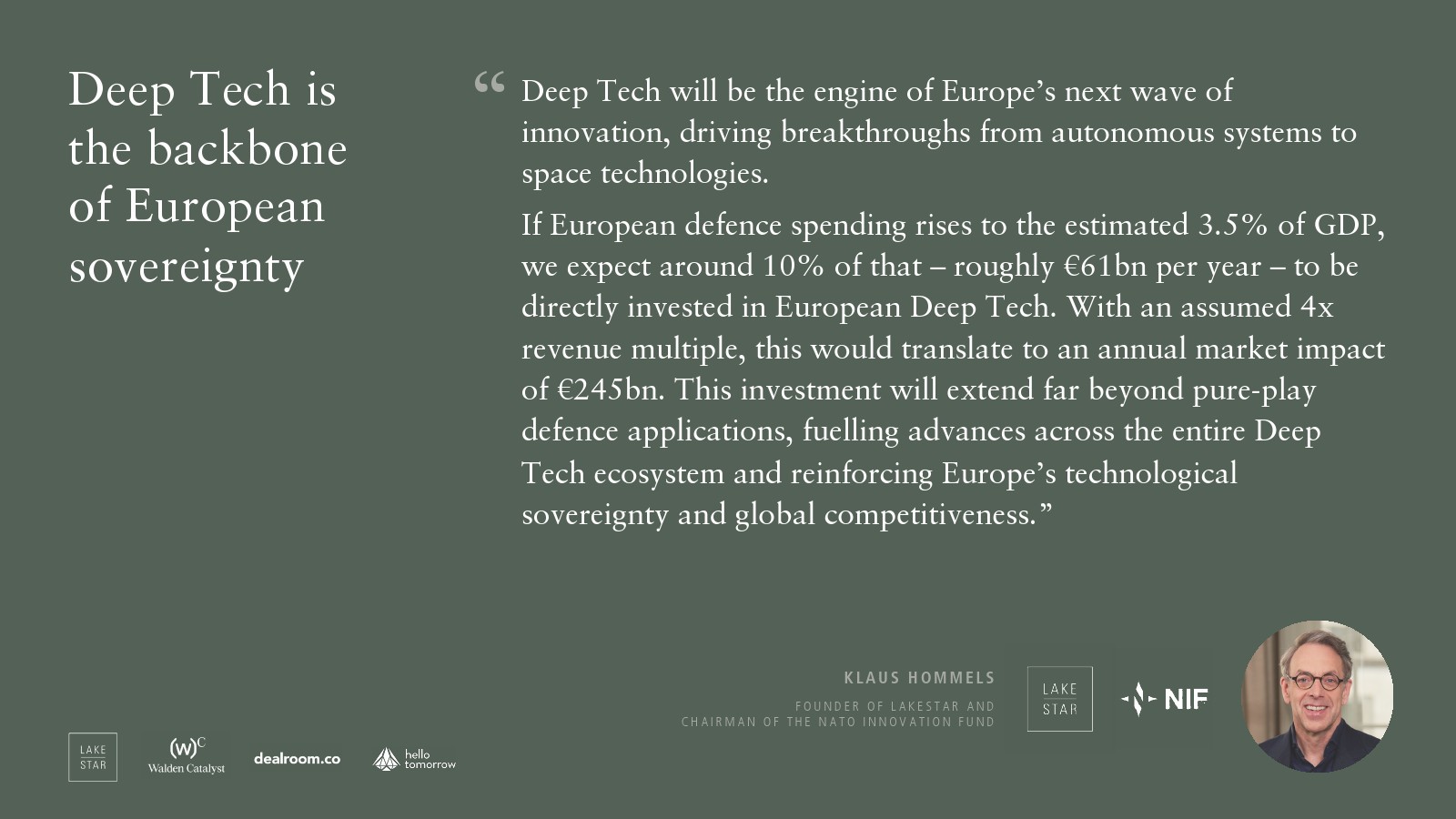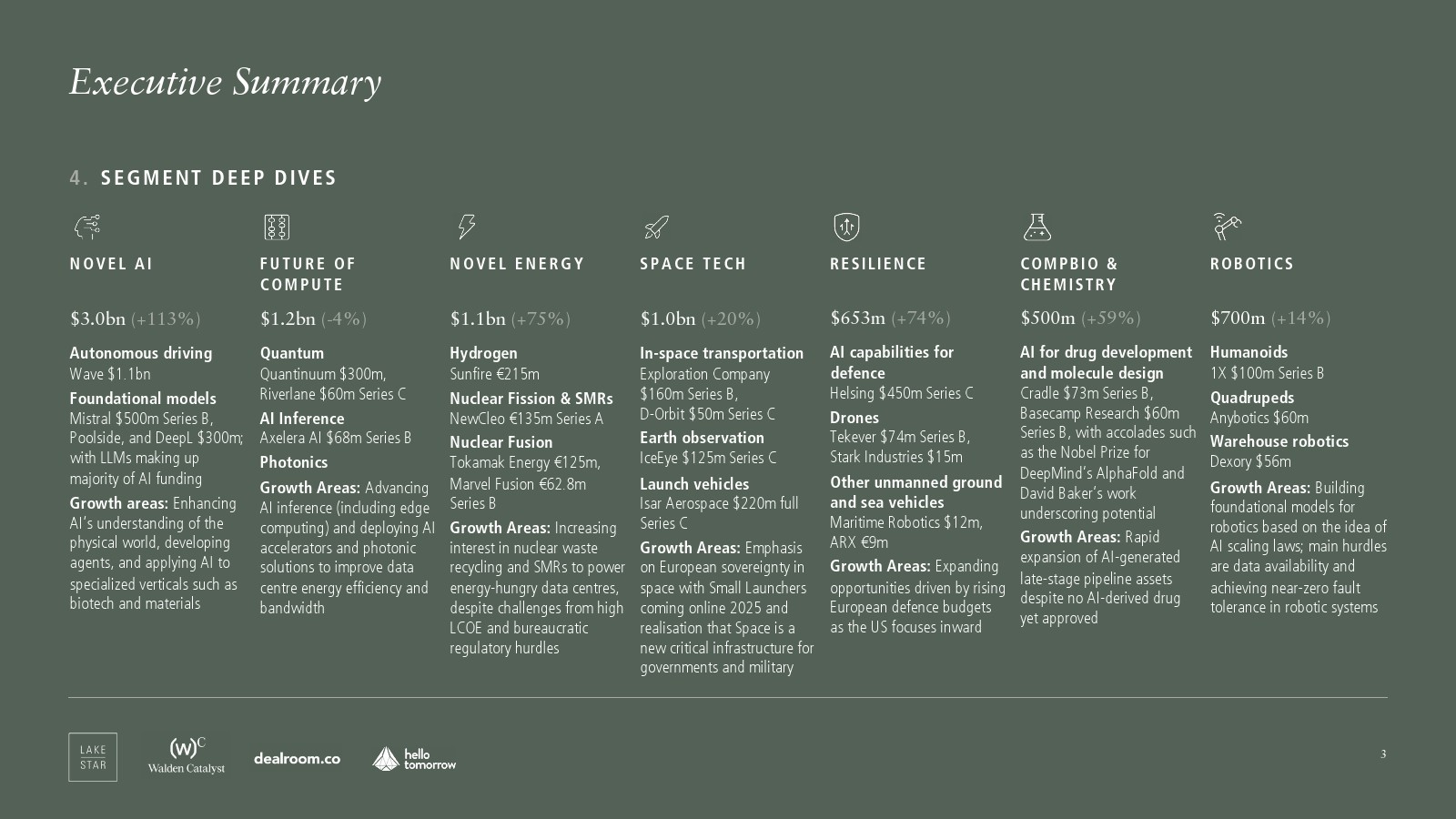 风险投资市场:深度科技为动量投资提供了对冲;2024年,150亿欧元流入深度科技——比2021年的高点下降了28%——而常规科技下降了60%。