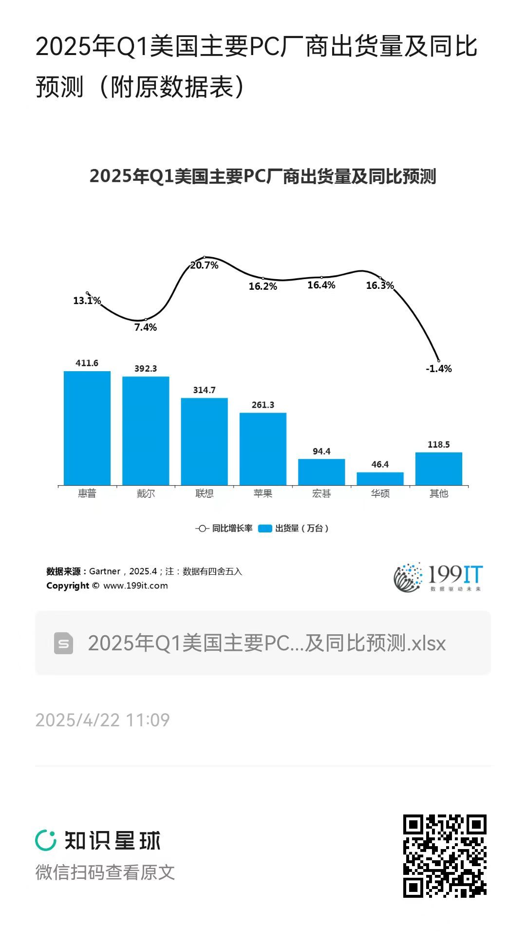 - 2025年Q1全球主要PC厂商出货量及同比(附原数据表)