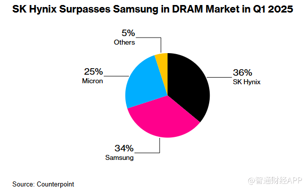 2025年第一季度,SK海力士在DRAM市场的份额超过三星